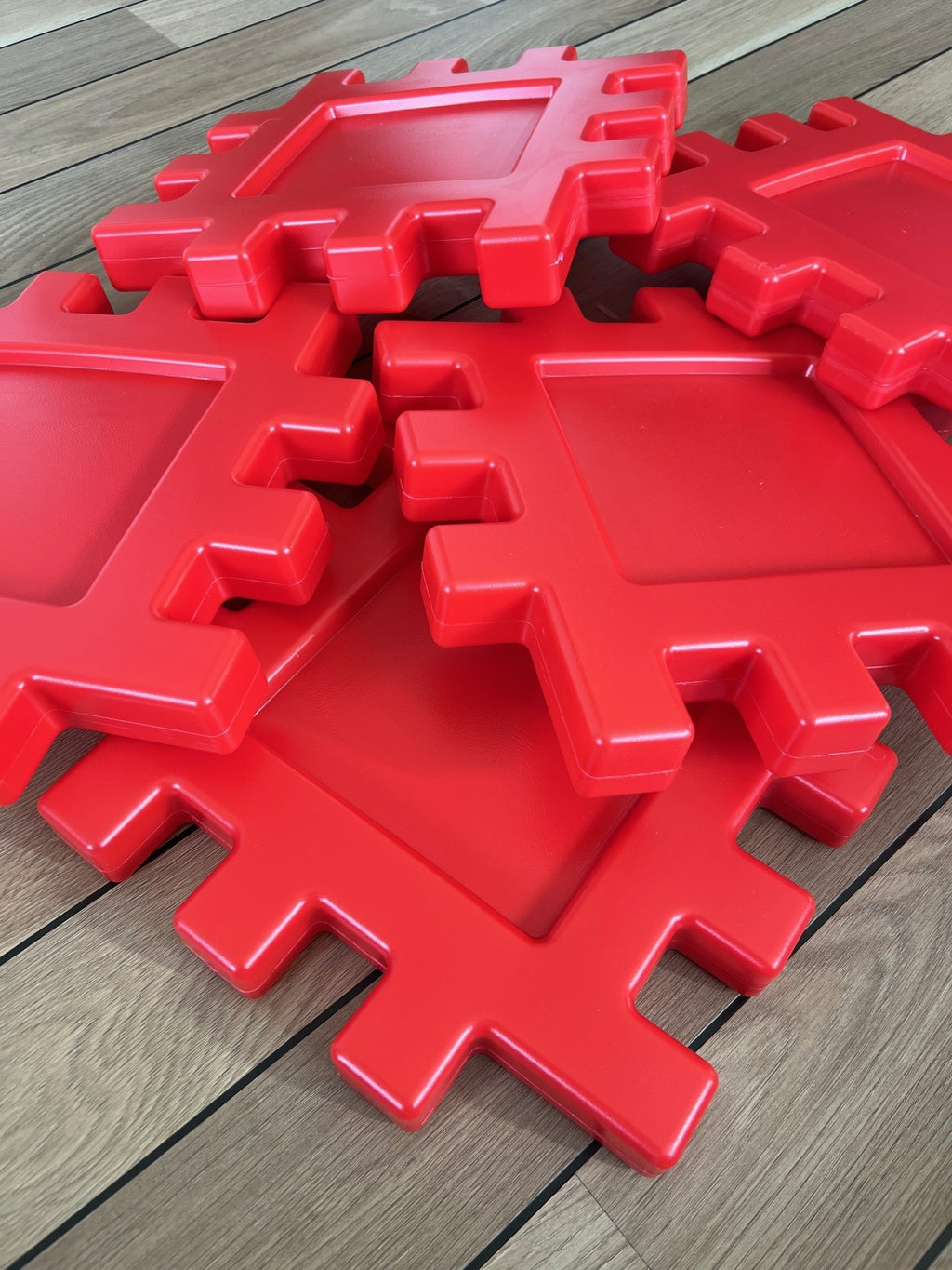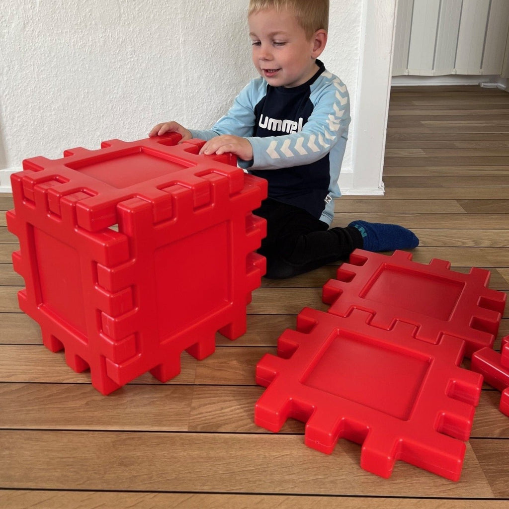 I dette sæt får man 24 stk. STORE byggeplader til sjov konstruktionsleg. Byggesættet indeholder byggedele i flot rød farve, som måler 30 x 30 cm. pr. del. Som vist på billederne kan byggepladerne bruges til at bygge alverdens spændende byggerier og konstruktioner. Byg både i 2D og 3D med disse Svanemærkede STORE byggeklods-figurer. Konstruktionslegetøjet kan bruges både til indendørs og udendørs leg.