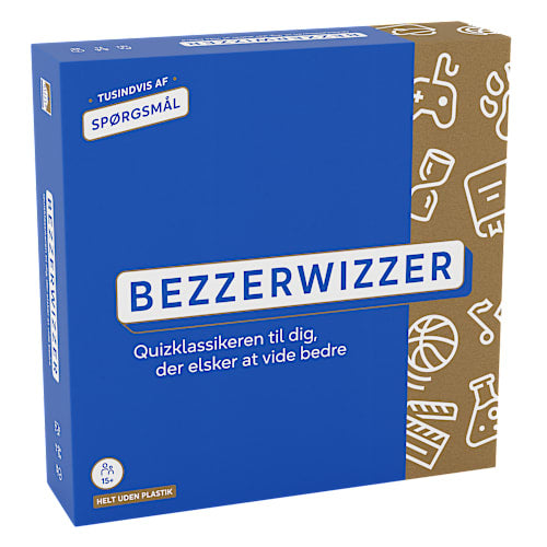 BEZZERWIZZER Original i enny 2025 version. Nu er det her endelig: Danskernes favorit-quizspil BEZZERWIZZER med tusindvis af helt nye spørgsmål og et innovativt og bæredygtigt design!