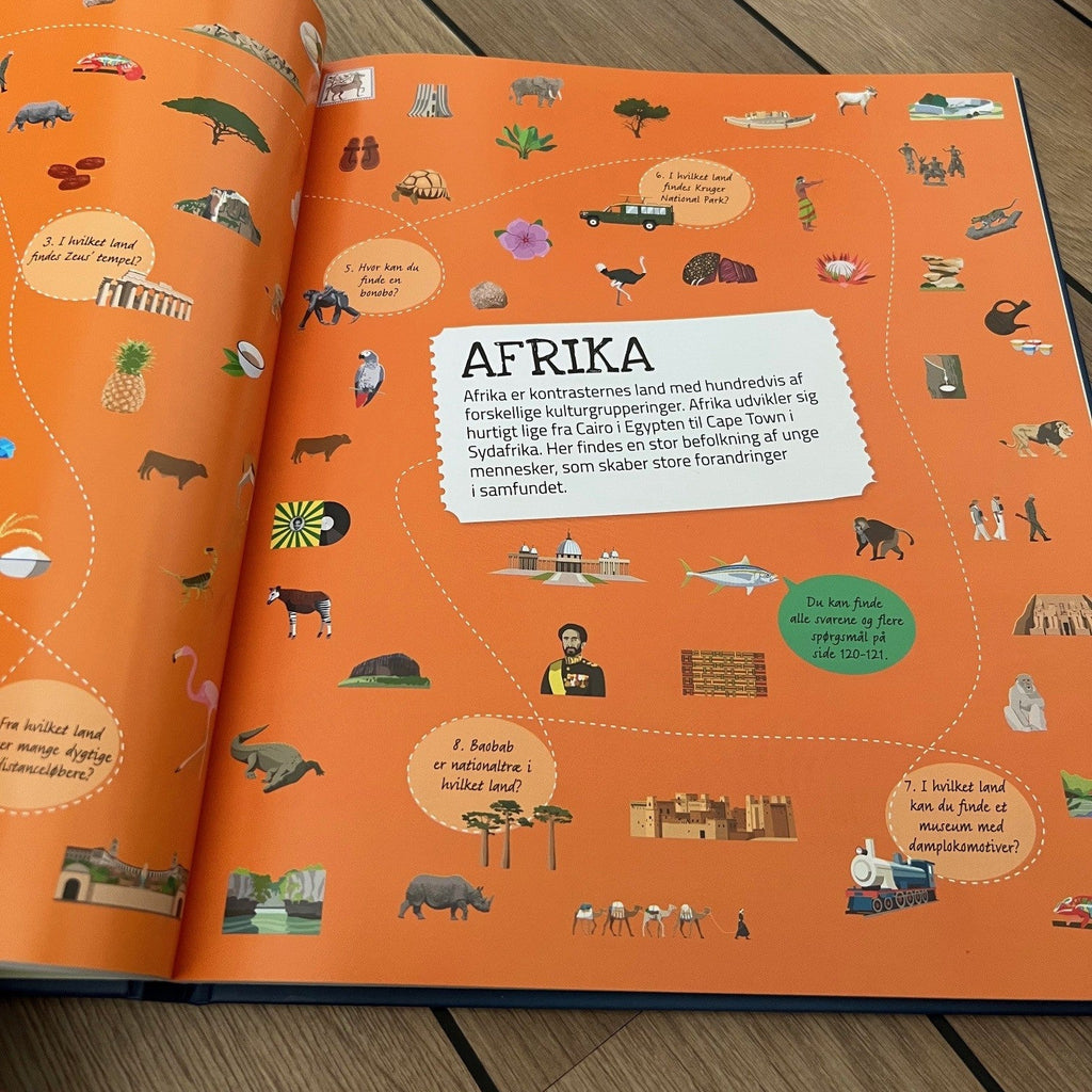 Flot fagbog for børn med masser af fakta oplysninger fra de enkelte lande. Kom hele verden rundt i dette spændende billedatlas fyldt med detaljer og fakta om klima, befolkning og seværdigheder. Rejsen kan tages sammen med en voksen eller læs selv om vores fantastiske klode.