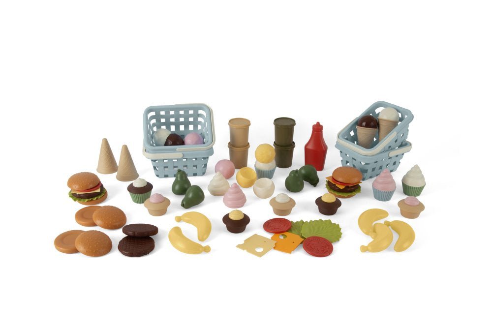 Dette store sæt legemad fra Dantoy Bio-serien indbyder til at slippe fantasien løs og lege alt fra café og bageri til indkøb, madlavning og servering. Sættet indeholder et bredt udvalg af madvarer, som gør det nemt at sammensætte forskellige måltider og skabe små hverdagslege i børnehøjde.