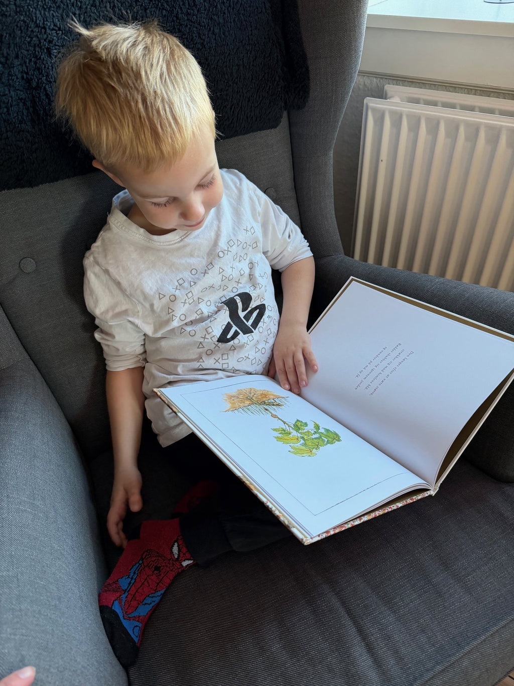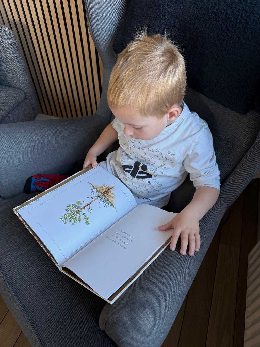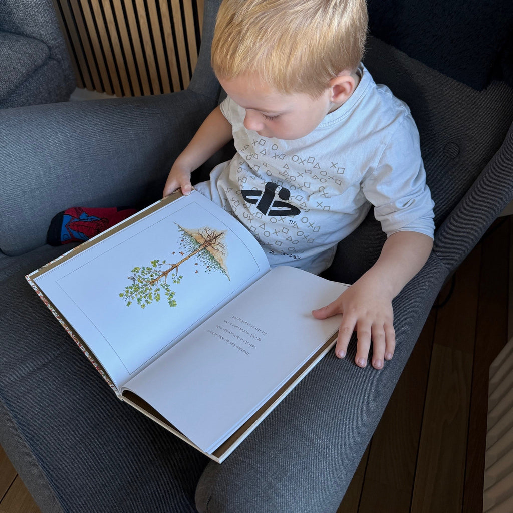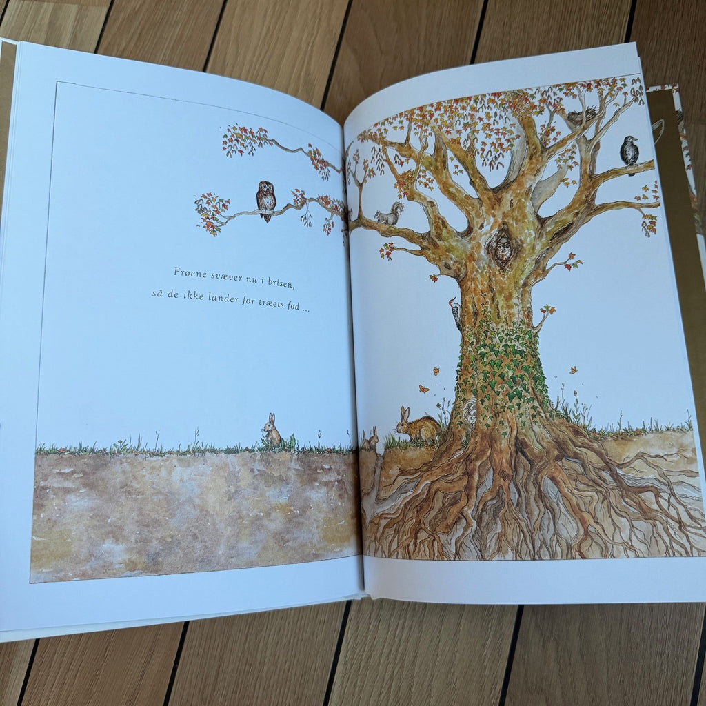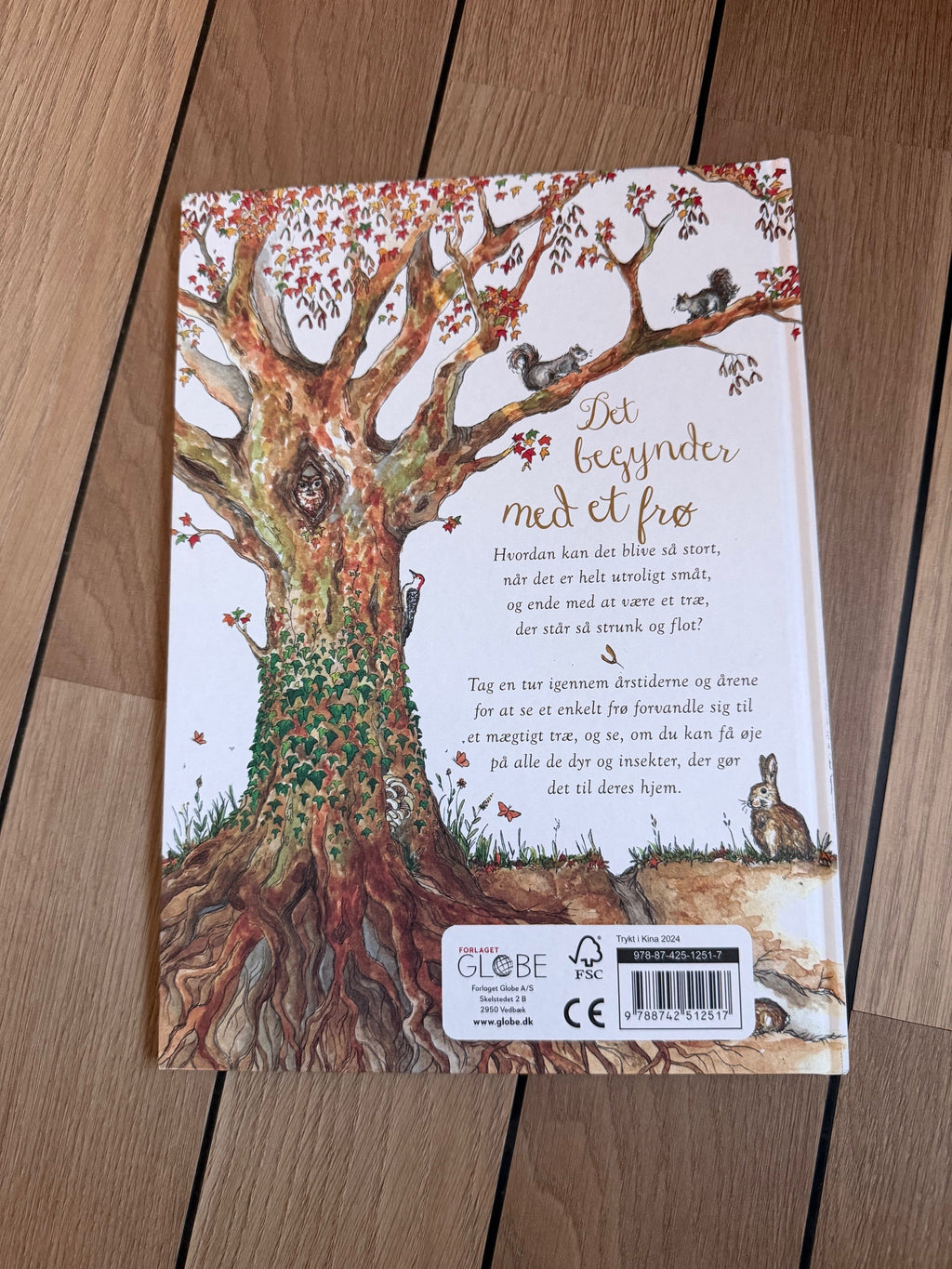 "Hvordan kan det blive så stort, når det er helt utroligt småt, og ende med at være et træ, der står så strunk og flot? Tag en tur gennem årstiderne og årene for at se et enkelt frø forvandle sig til et mægtigt træ, og se, om du kan få øje på alle de dyr og insekter, der gør det til deres hjem..."