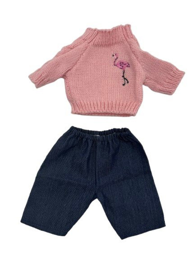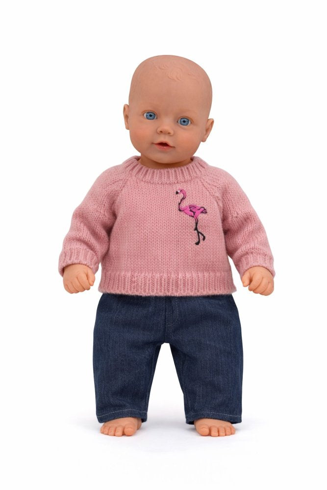 Dukketøj - 38-41 cm - pink - striktrøje og bukser