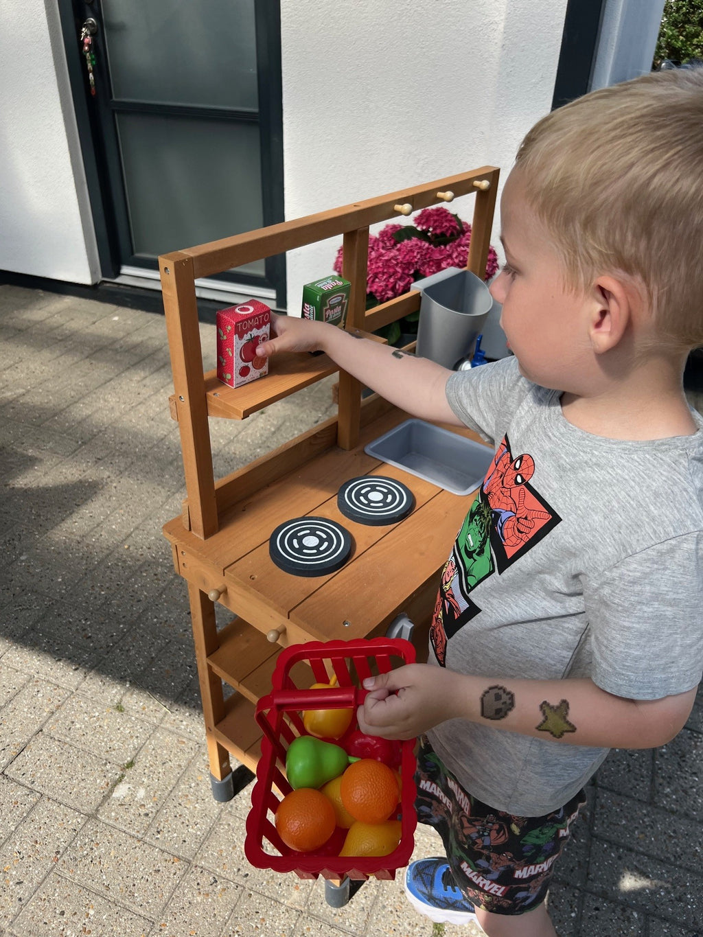 "Et fint lille sæt, som passer godt i legekøkkenet eller til legehuset. Villads på 5 år og Valdemar på snart 3 år, kan nemt håndtere delene i sættet og legen går derfor hurtigt i gang. Herhjemme bliver der ofte lavet “mad” ved sofabordet eller i det lille legekøkken på børneværelset, hvor rollelegene udvikles alt efter hvem der er med i legen. Nu hvor det er sommer, bliver legen flyttet udenfor ved drengenes udendørs legekøkken eller i deres legehus.