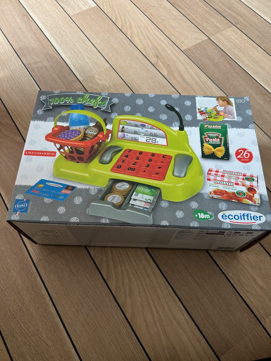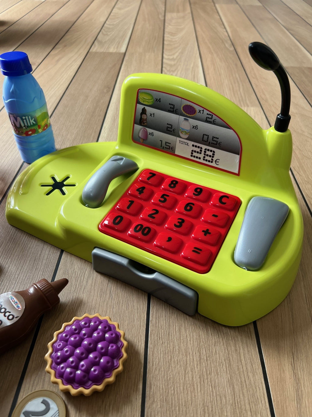 Et farverigt kasseapparat fra Ecoiffier, der gør købmandslegen levende! Børn elsker at scanne varer, trykke på knapper samt tælle pengene, når varerne bliver "betalt". Det medfølgende legetøjskreditkort, scanner og varer i miniudgaver gør legen endnu sjovere og mere virkelighedstro. Børn elsker at efterligne hverdagens situationer.