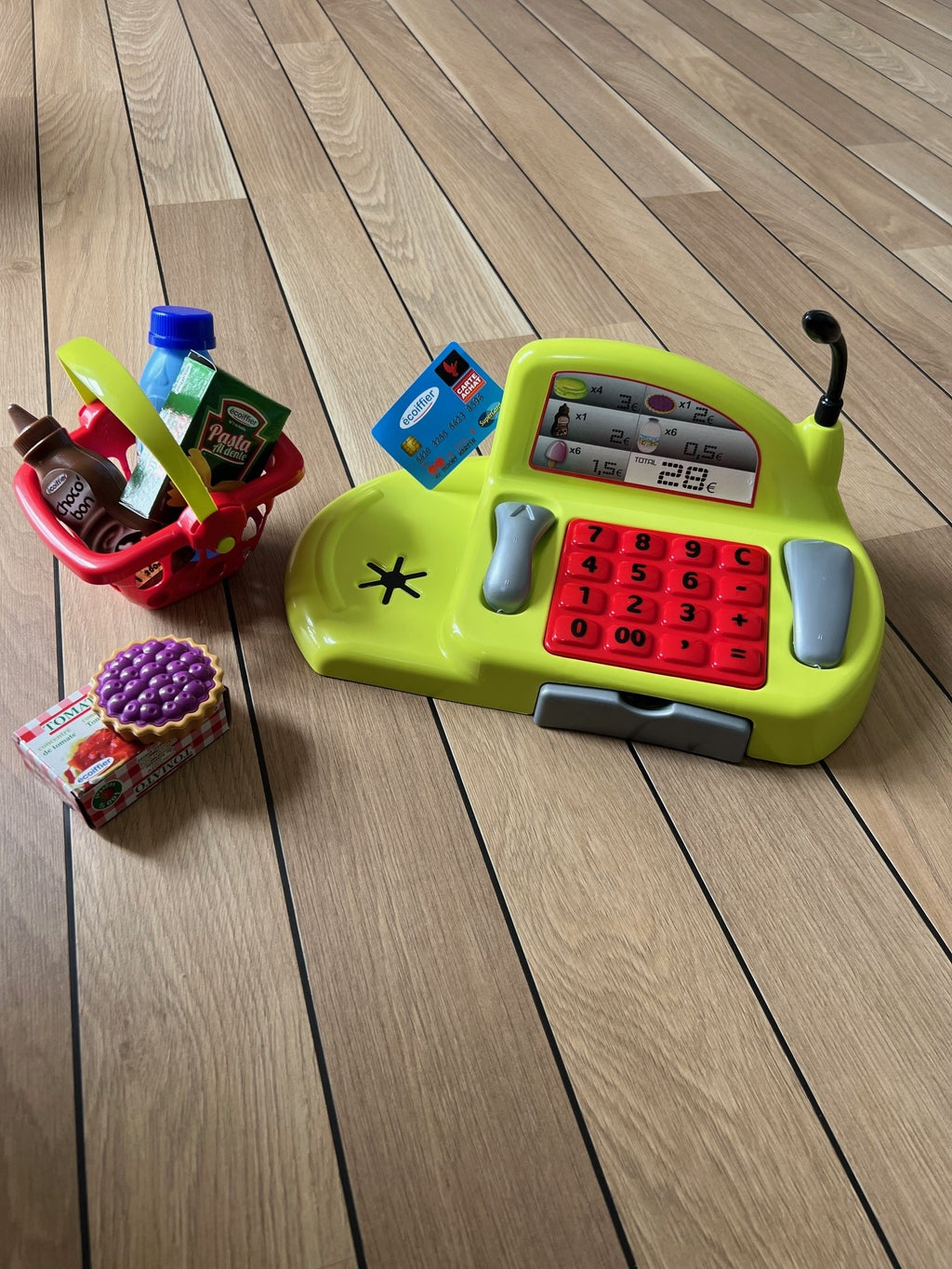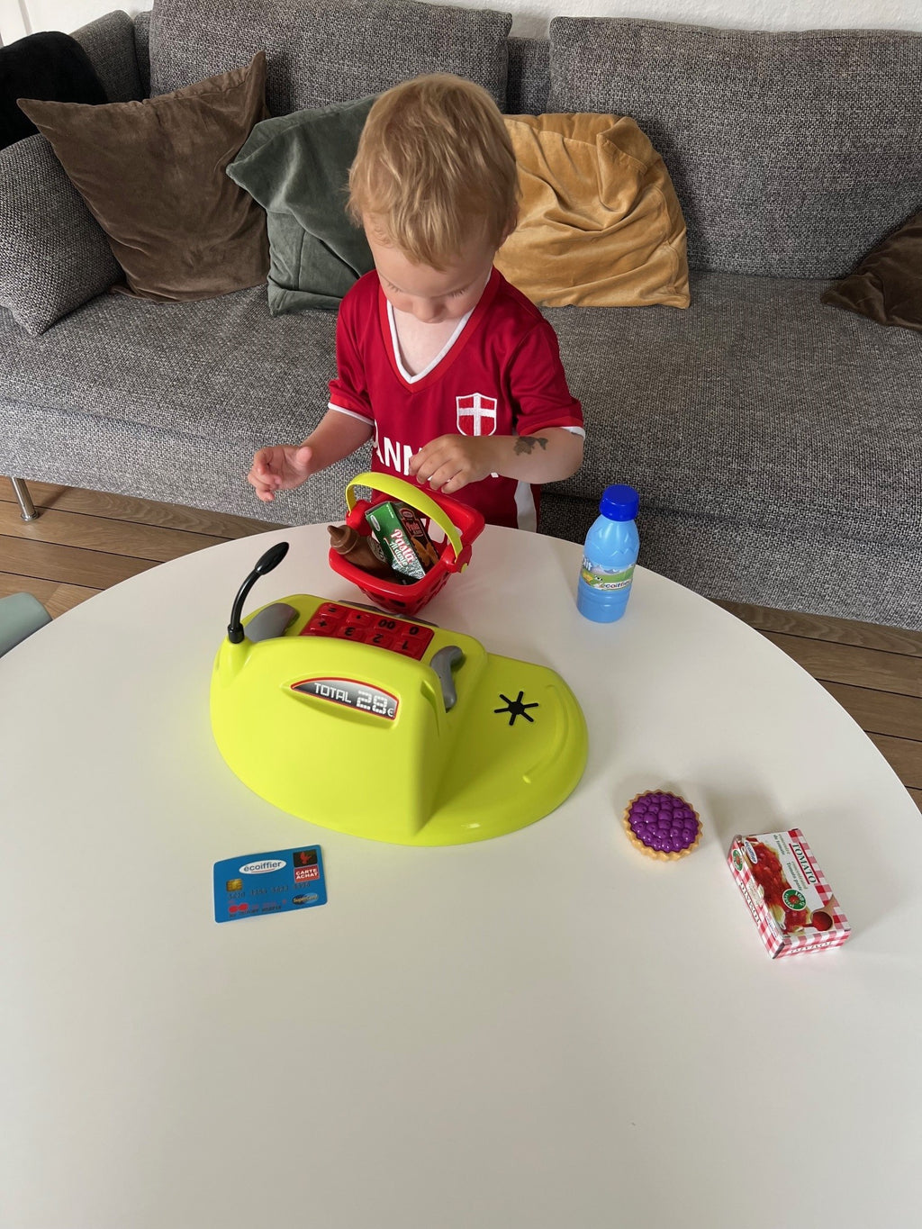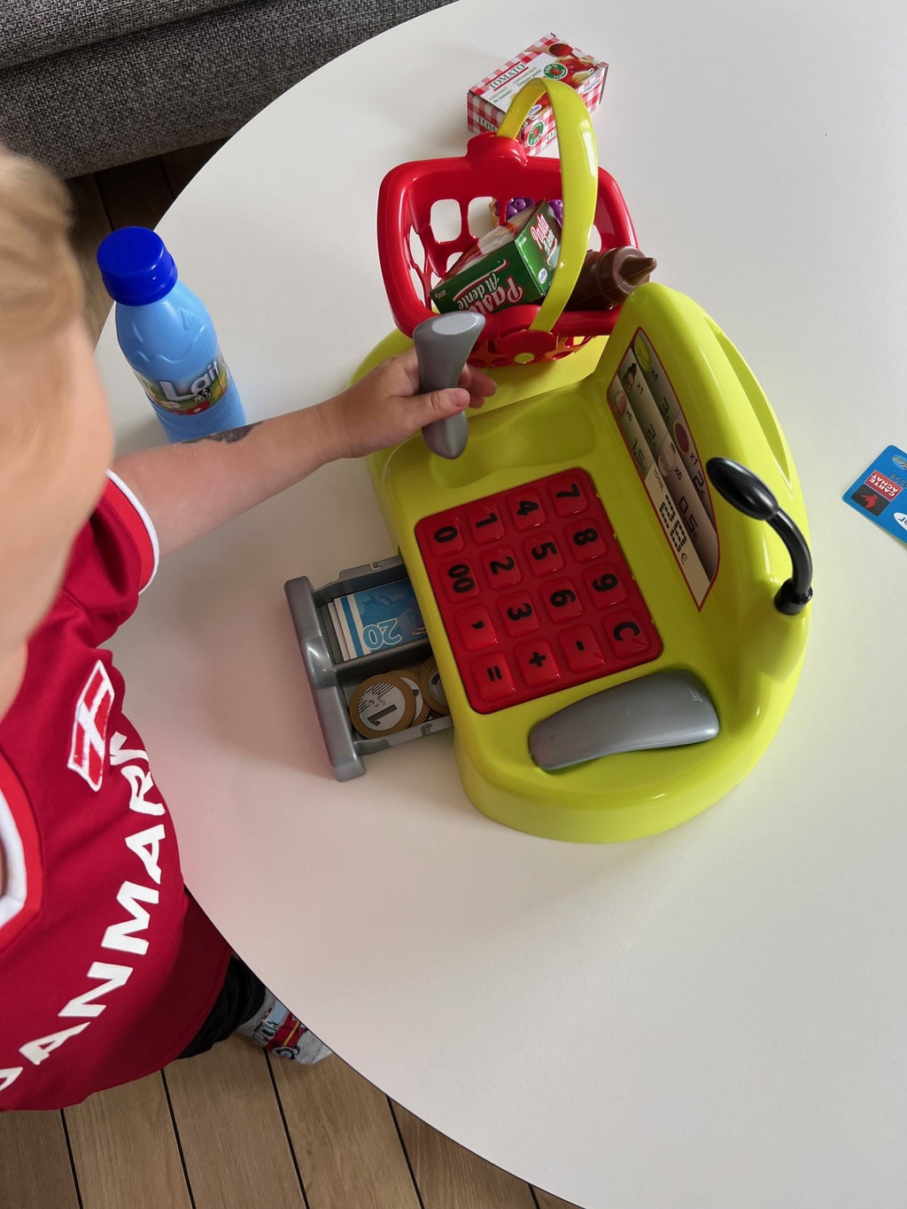"Et fint lille kasseapparat, som passer godt i købmandslegen eller i legehuset. Valdemar på snart 3 år, kan nemt håndtere delene i sættet og legen går derfor hurtigt i gang. Herhjemme bliver der ofte "handlet varer" ved sofabordet, hvor rollelegene udvikles alt efter hvem der er med i legen..."