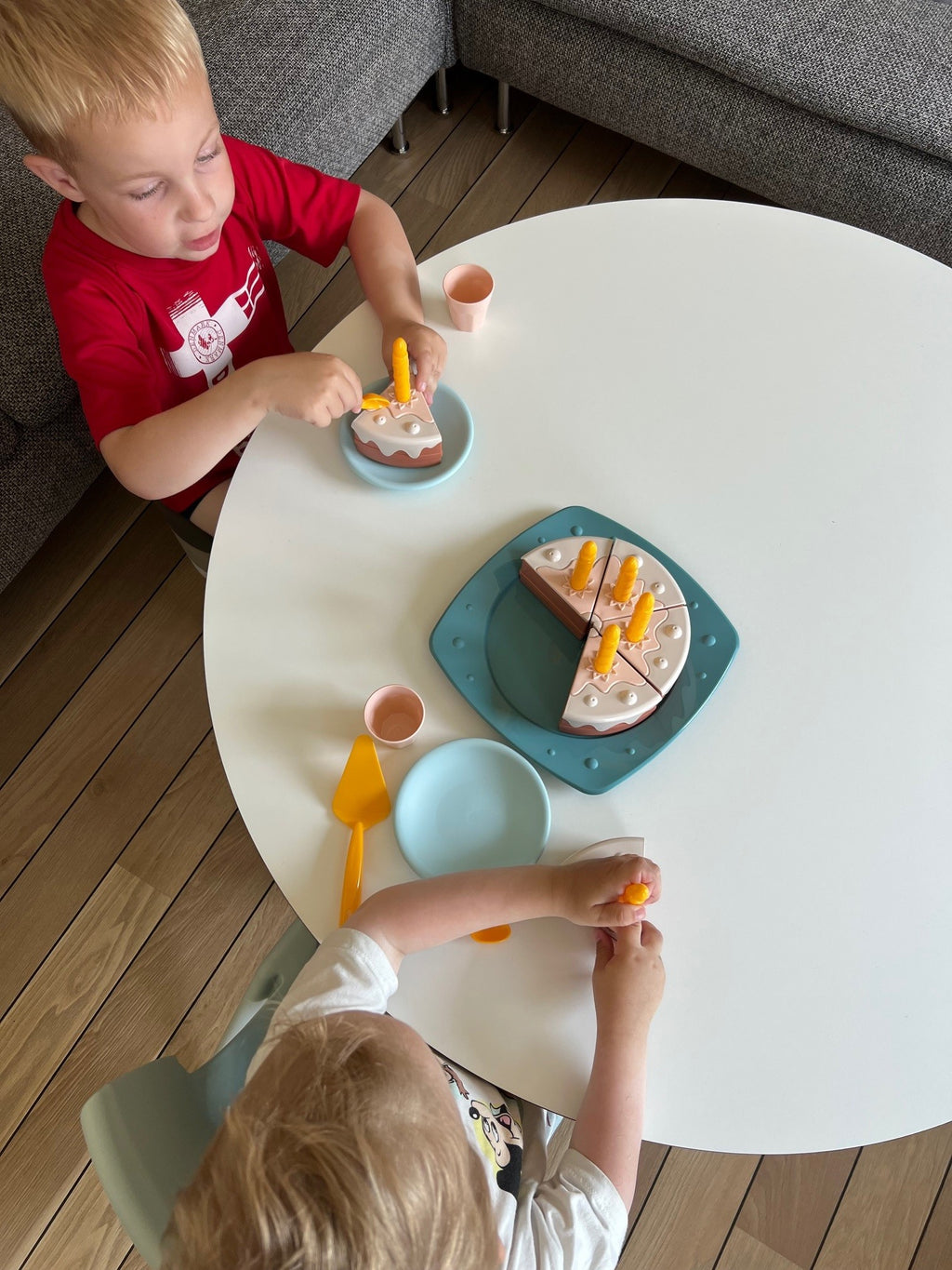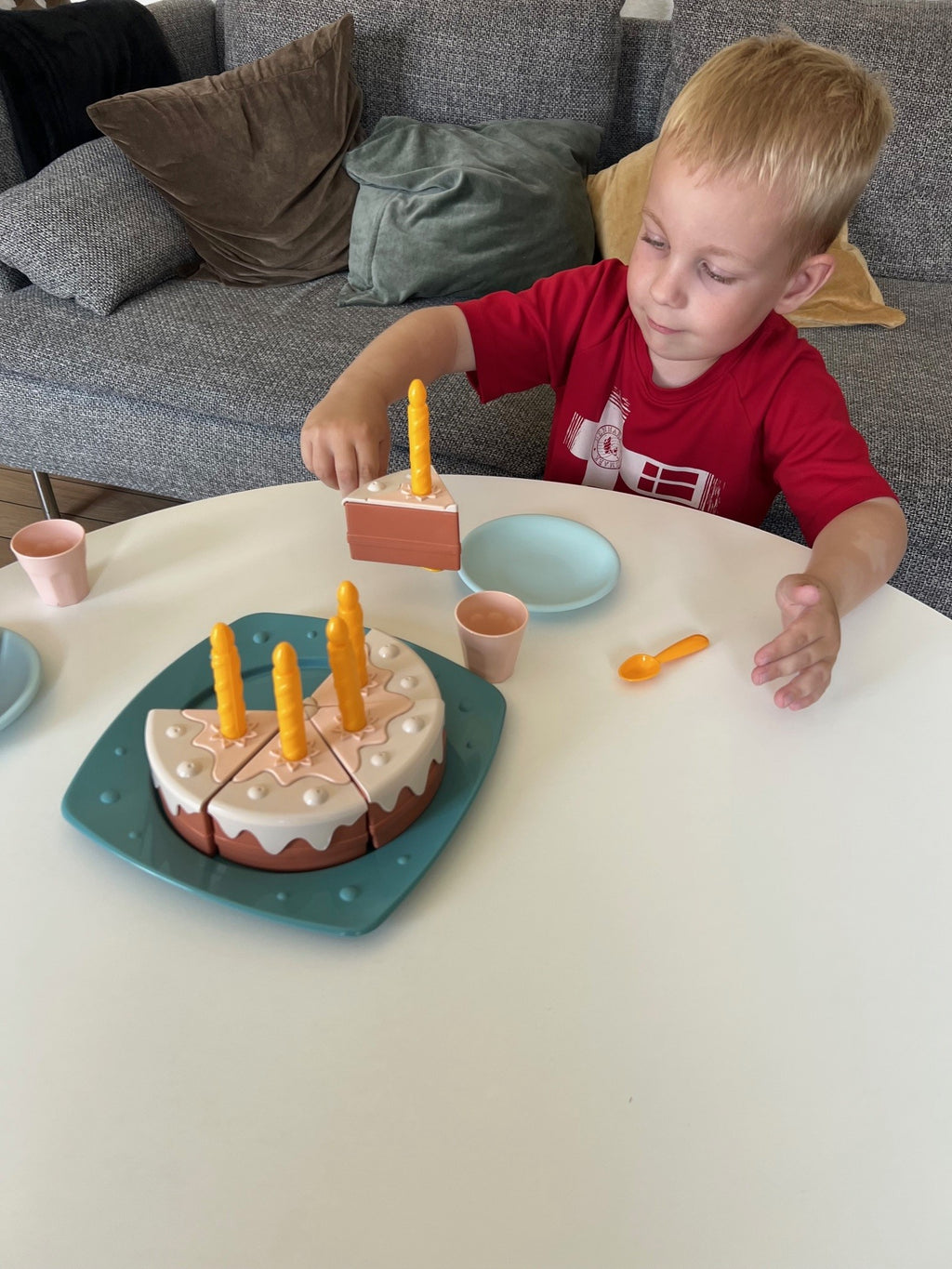 "Et rigtig fint sæt, som passer godt i legekøkkenet eller til legehuset. Villads på 5 år og Valdemar på snart 3 år, kan nemt håndtere delene i sættet og legen går derfor hurtigt i gang. Herhjemme bliver der ofte lavet “mad” ved sofabordet eller i det lille legekøkken på børneværelset, hvor rollelegene udvikles alt efter hvem der er med i legen..."