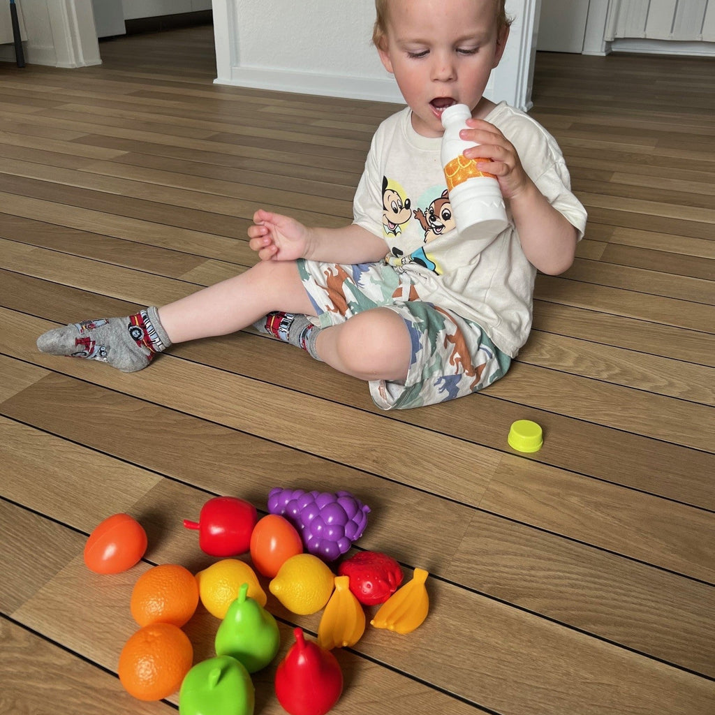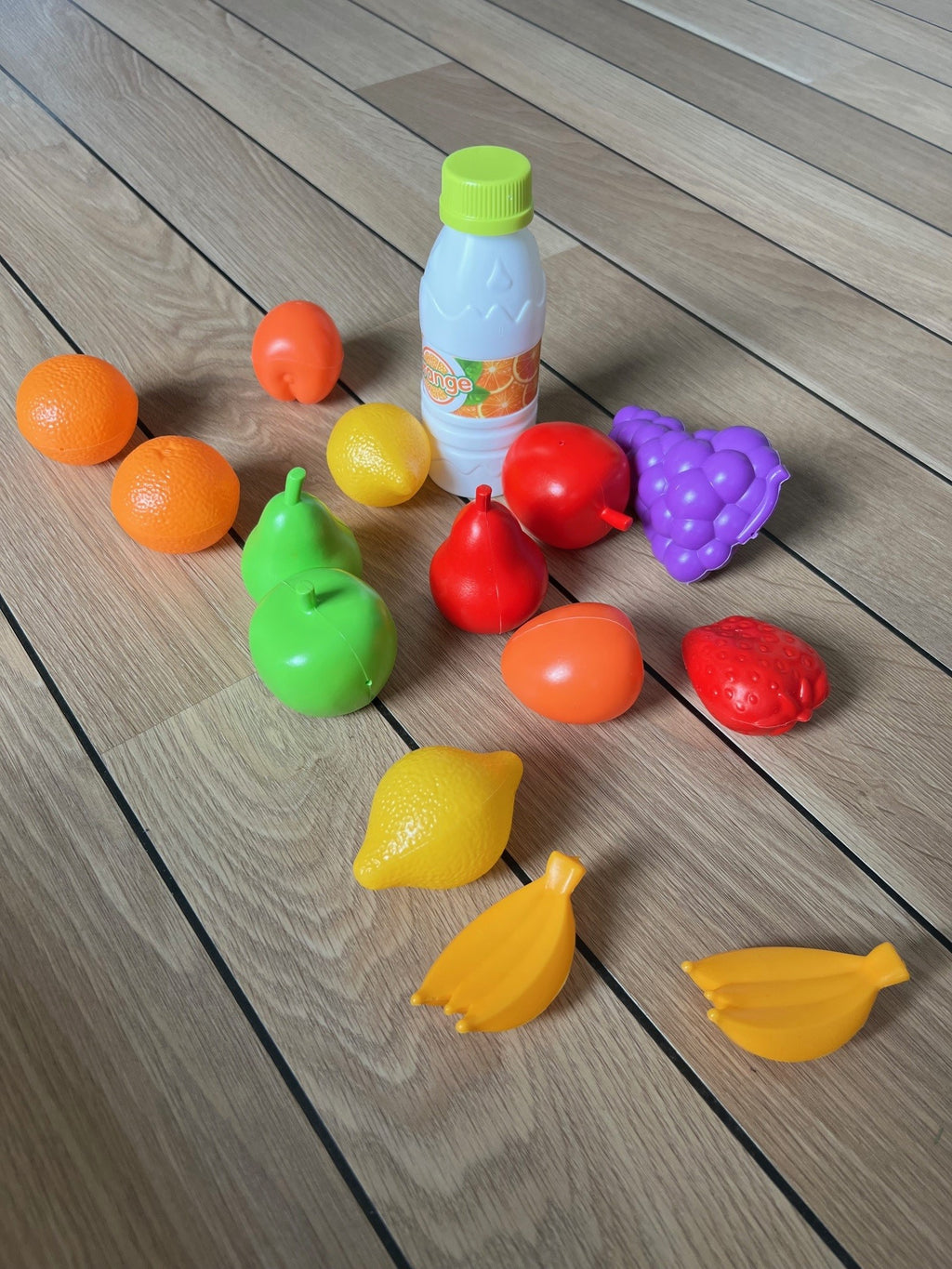 Sættet indeholder alt fra bananer og vindruer til citroner og tomater – perfekt til at skabe en lege købmand eller lave frugtsalat. Legetøjet er let at håndtere for små hænder, og kvaliteten er robust, så legen kan gentages igen og igen. Perfekt gaveidé til små spirende kokke. Leg med legemad styrker både sociale og motoriske færdigheder. Gennem rolleleg får børn mulighed for at eksperimentere og lære gennem imitation.