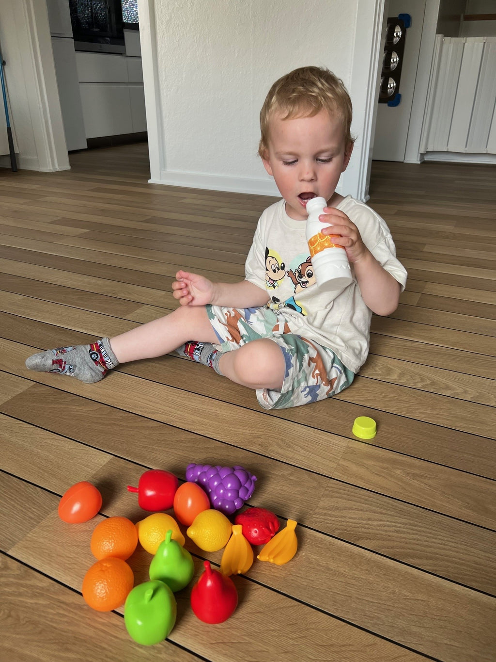 "Et meget fint lille sæt med frugt og grønt, som passer godt i legekøkkenet eller til legehuset. Villads på 5 år og Valdemar på snart 3 år, kan nemt håndtere delene i sættet og legen går derfor hurtigt i gang. Herhjemme bliver der ofte lavet “mad” ved sofabordet eller i det lille legekøkken på børneværelset, hvor rollelegene udvikles alt efter hvem der er med i legen..."