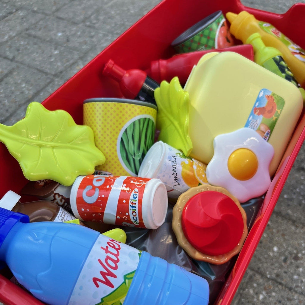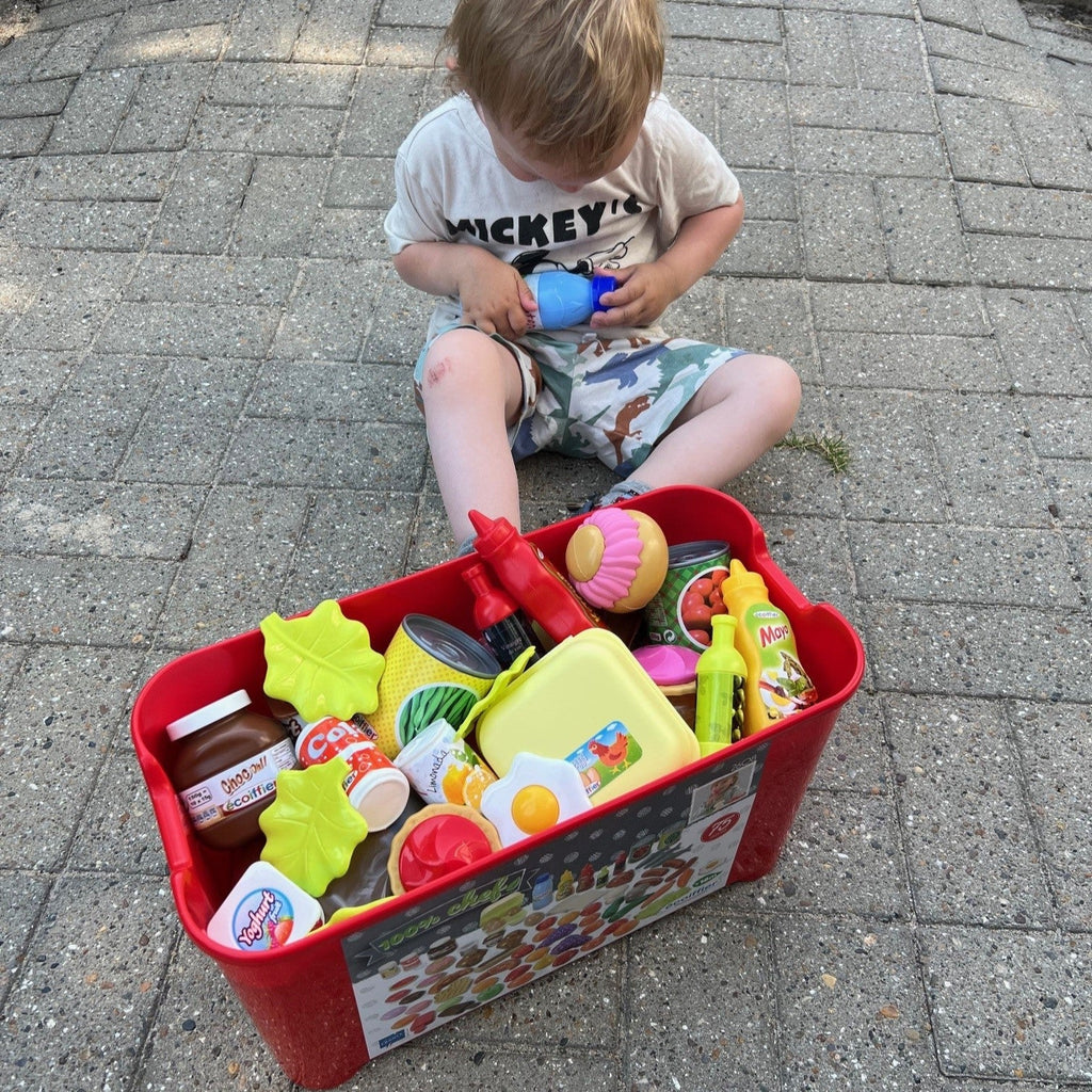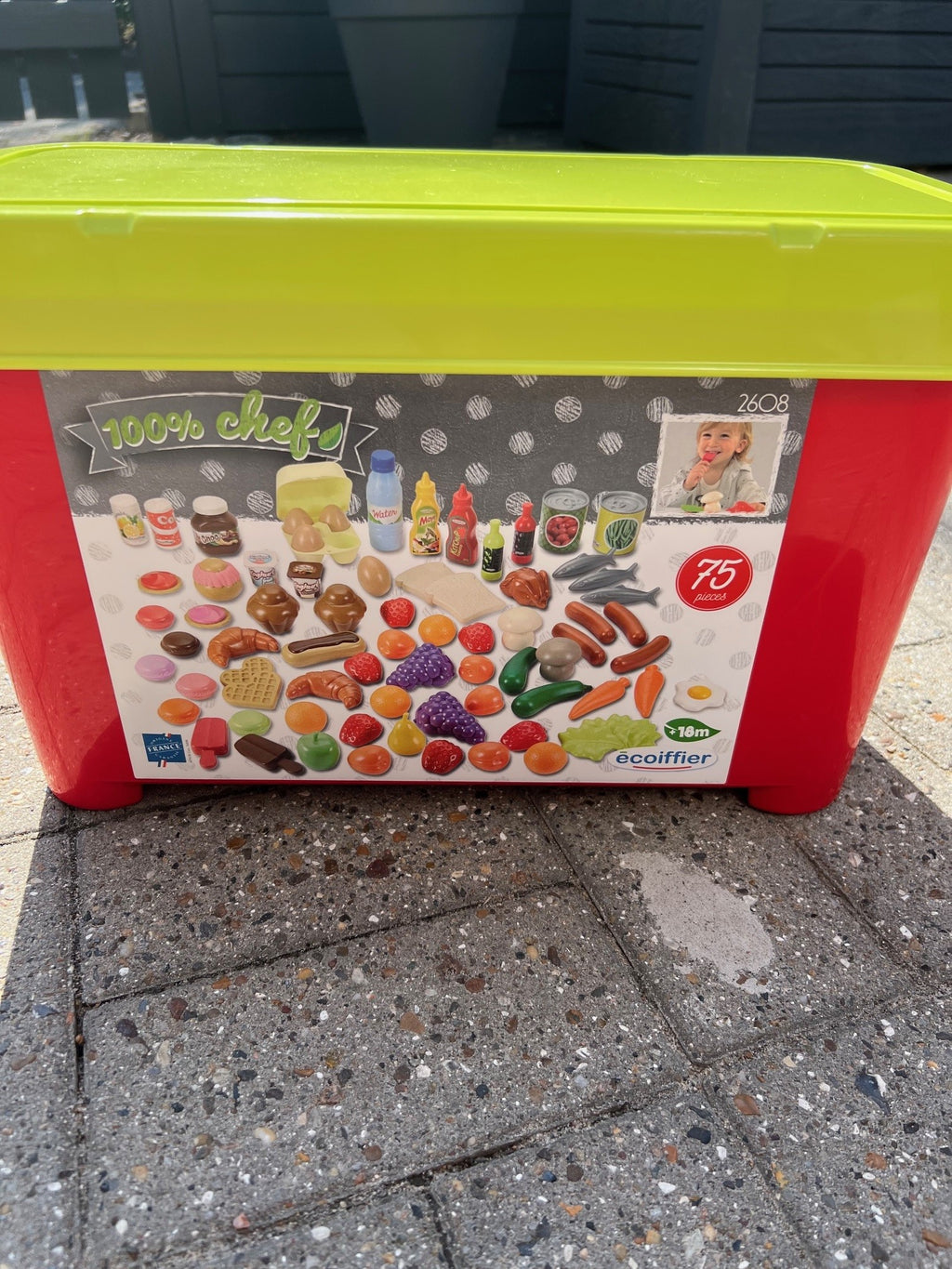 Lad fantasien blomstre med denne store samling af farverig legemad fra Ecoiffier! Børn elsker at lege café, restaurant eller købmand. Og med denne kassen er der verden af muligheder. Kassen rummer hele 75 dele – alt fra frugt og grøntsager til drikkevarer og madvarer, der vækker genkendelse og glæde. Det store udvalg giver rig mulighed for kreativ rolleleg, hvor dit barn kan efterligne hverdagen og finde på sjove historier. Når legen er slut, kan alt pakkes nemt væk i den medfølgende opbevaringskasse. En perfekt gaveidé, der kombinerer leg og læring – lige her hos Legebyen.