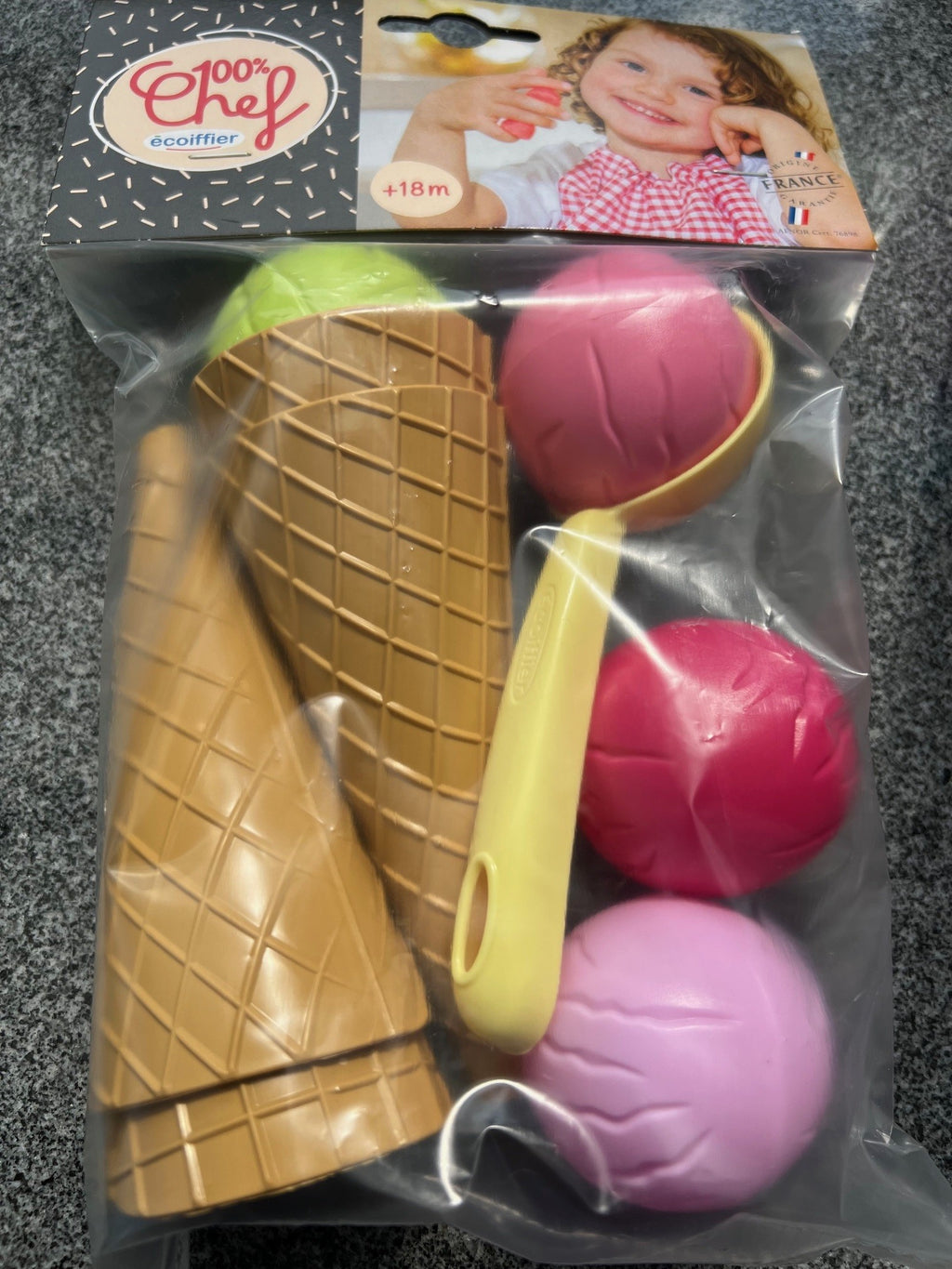 Med dette farverige isvaffelsæt fra Ecoiffier kan der leges isbod i timevis! Børn elsker at putte kuglerne i vaflen, og her kan man vælge mellem flere varianter, og kun fantasien bestemmer hvilken smag den enkelte kuglefarve har. At servere lækre is til både dukker og bamser er et stort hit. Sættet indbyder til rolleleg og styrker fantasien. Perfekt gaveidé og et hit i legekøkkenet og isboden – direkte fra Legebyen!