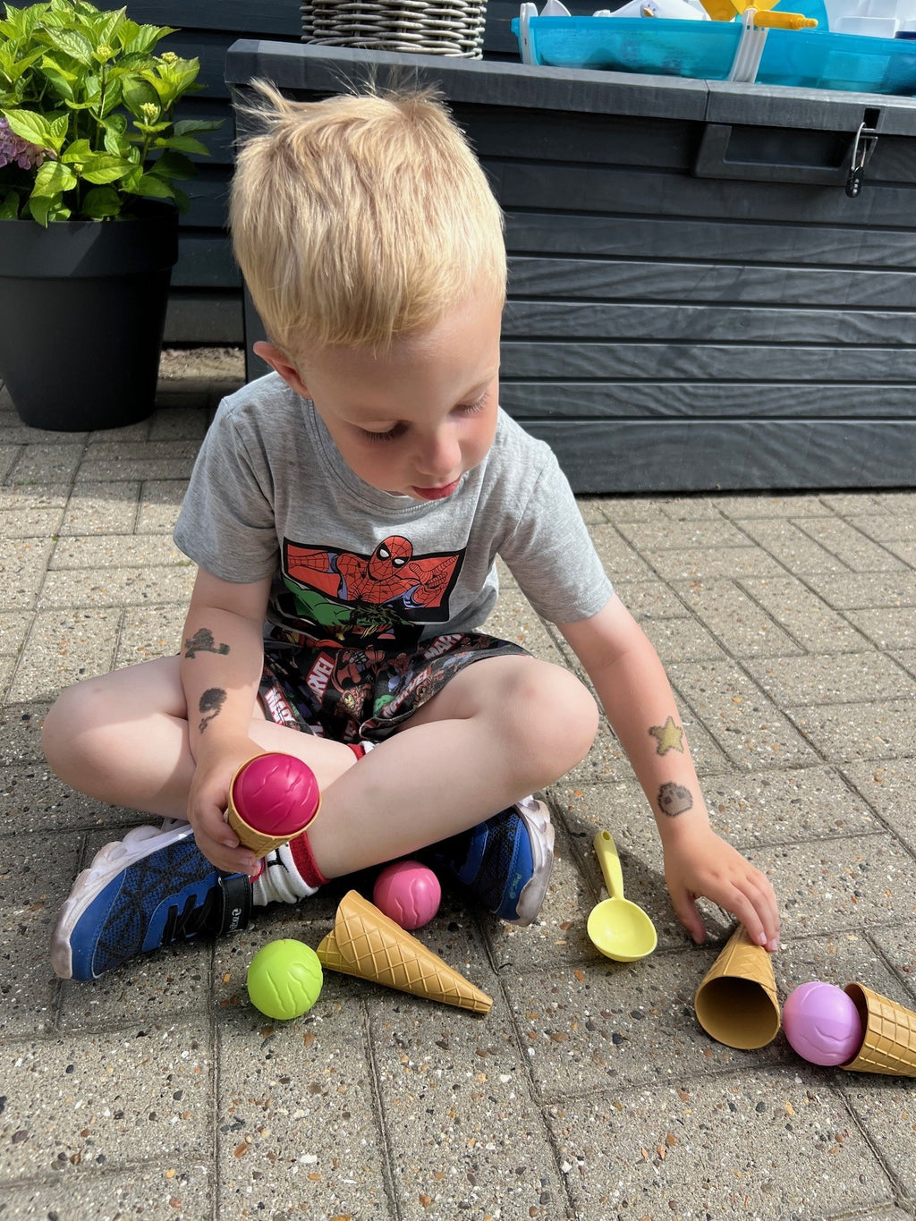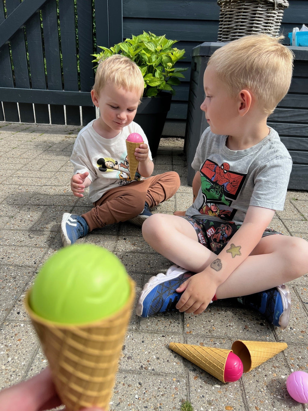 "Et fint lille sæt, som passer godt i legekøkkenet eller til legehuset. Villads på 5 år og Valdemar på snart 3 år, kan nemt håndtere delene i sættet og legen går derfor hurtigt i gang. Herhjemme bliver der ofte lavet “mad” ved sofabordet eller i det lille legekøkken på børneværelset, hvor rollelegene udvikles alt efter hvem der er med i legen. Nu hvor det er sommer, bliver legen flyttet udenfor ved drengenes udendørs legekøkken eller i deres legehus.