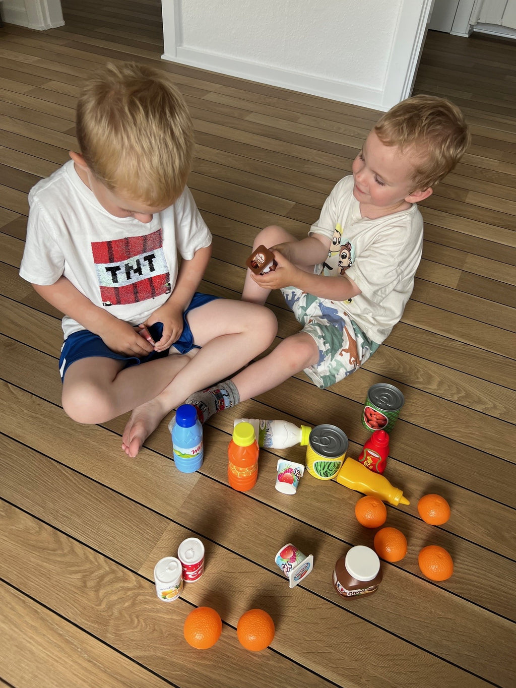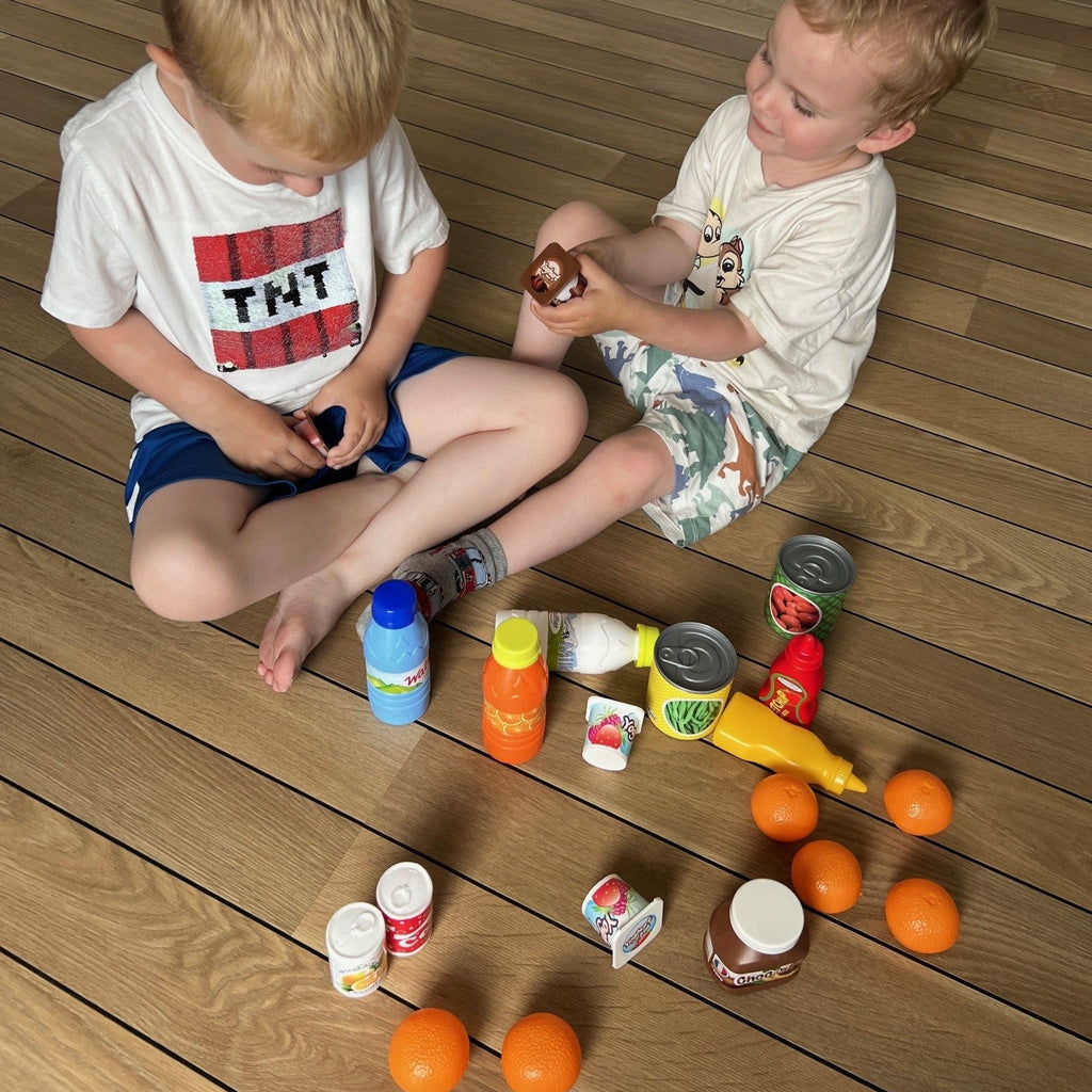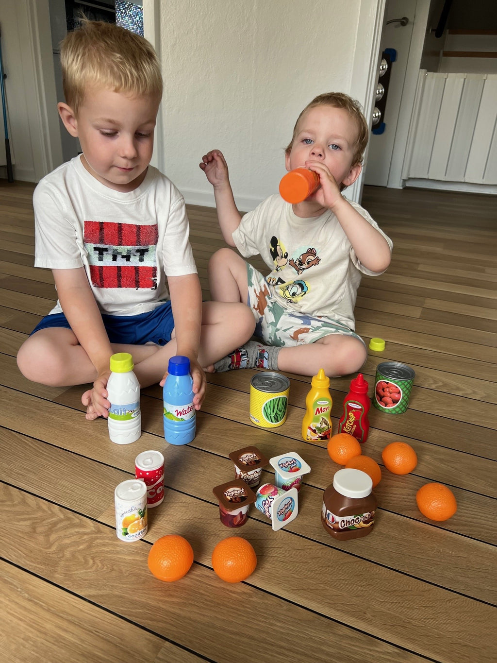 "Et fint sæt med legemad og andre forsyninger til legekøkkenet eller til legehuset, eller til den lille købmandsbutik. Villads på 5 år og Valdemar på snart 3 år, kan nemt håndtere delene i sættet og legen går derfor hurtigt i gang. Herhjemme bliver der ofte "lavet mad” ved sofabordet, eller i det lille legekøkken på børneværelset, hvor rollelegene udvikles alt efter hvem der er med i legen..."