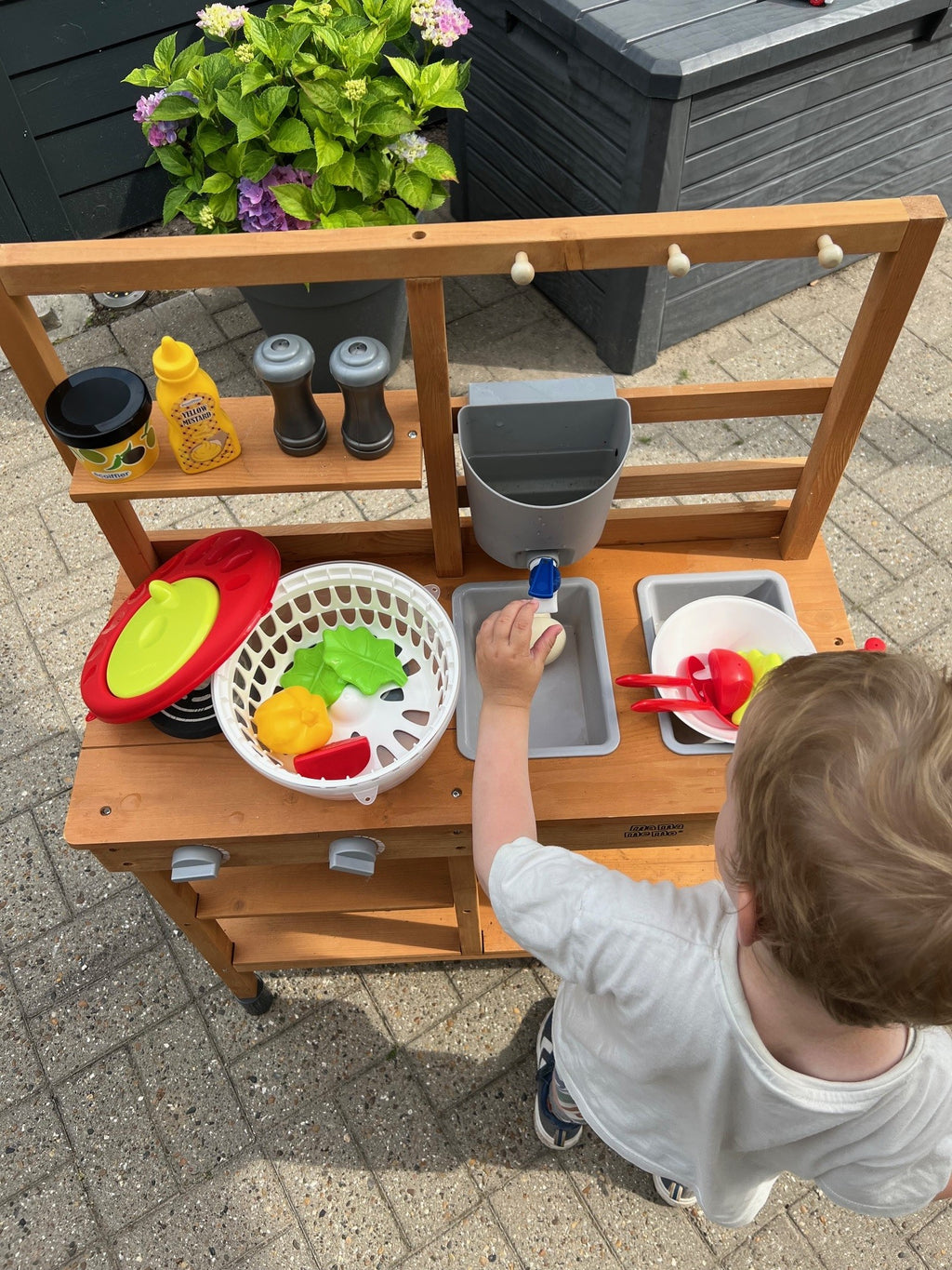 "Et meget fint sæt, som passer godt i legekøkkenet eller til legehuset. Villads på 5 år og Valdemar på snart 3 år, kan nemt håndtere delene i sættet og legen går derfor hurtigt i gang. Herhjemme bliver der ofte lavet “mad” ved sofabordet eller i det lille legekøkken på børneværelset, hvor rollelegene udvikles alt efter hvem der er med i legen. Nu hvor det er sommer, bliver legen flyttet udenfor ved drengenes udendørs legekøkken eller i deres legehus..."