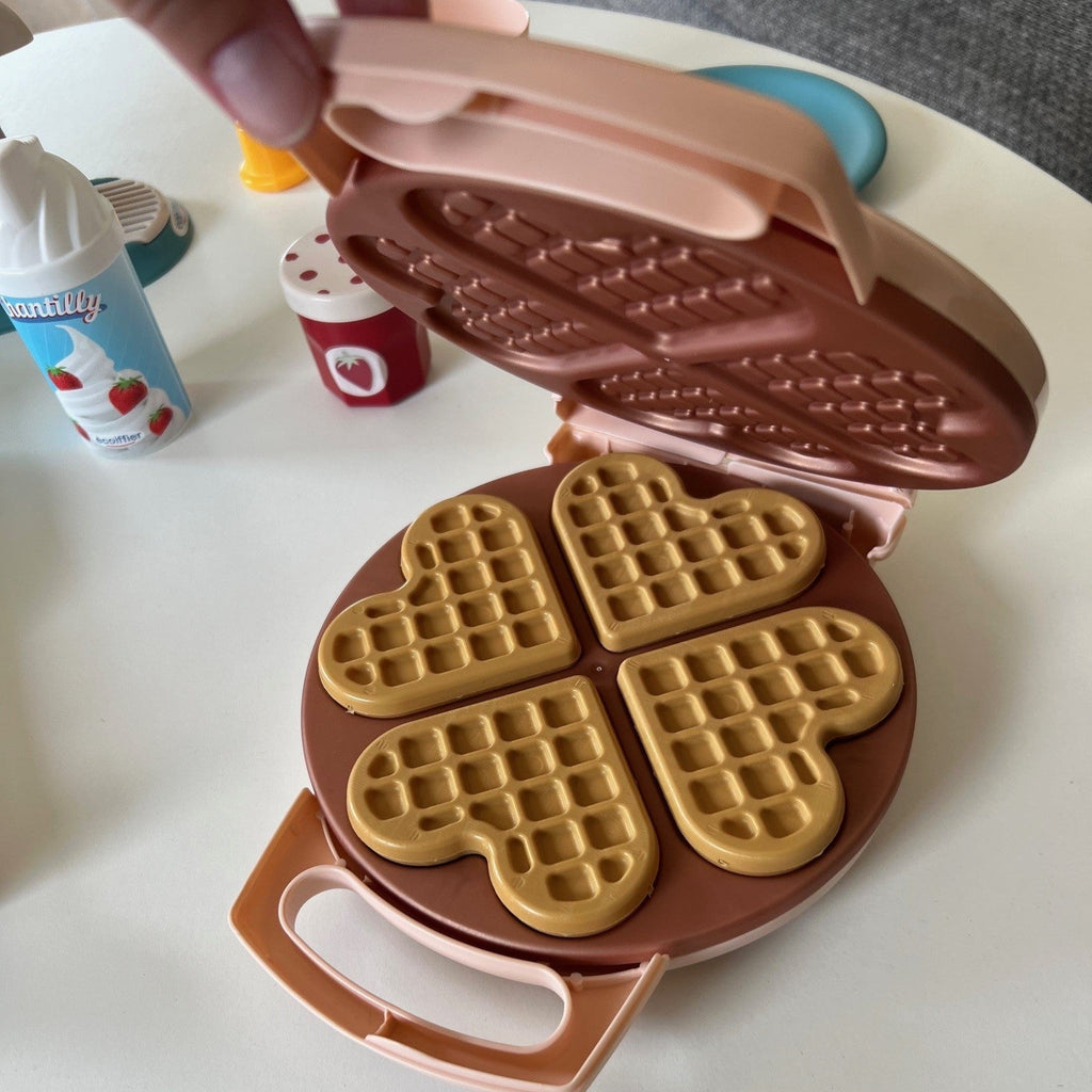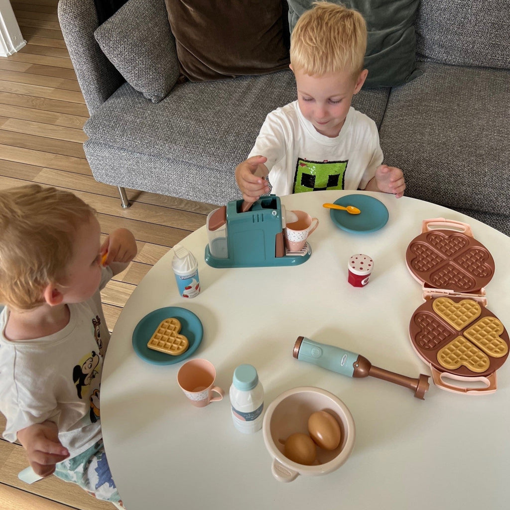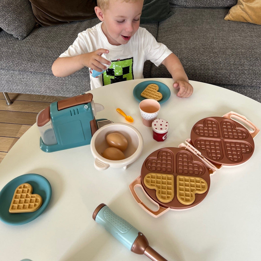 Legebyen ser rigtig mange muligheder for mange timers sjov leg, hvor den lille konditor og barista rigtig kan udfolde sig. Vaffelsættet er komplet med tallerkener, kopper, skeer og bestik. En hyggelig måde at styrke fantasifuld leg og rolleleg i hjemmet. Med de 21 dele er der rig mulighed for mange timers sjov, og sættet passer perfekt ind i ethvert legekøkken. Leg med legemad styrker meget mere end bare fantasien. Med dette vaffelsæt får børn mulighed for at: