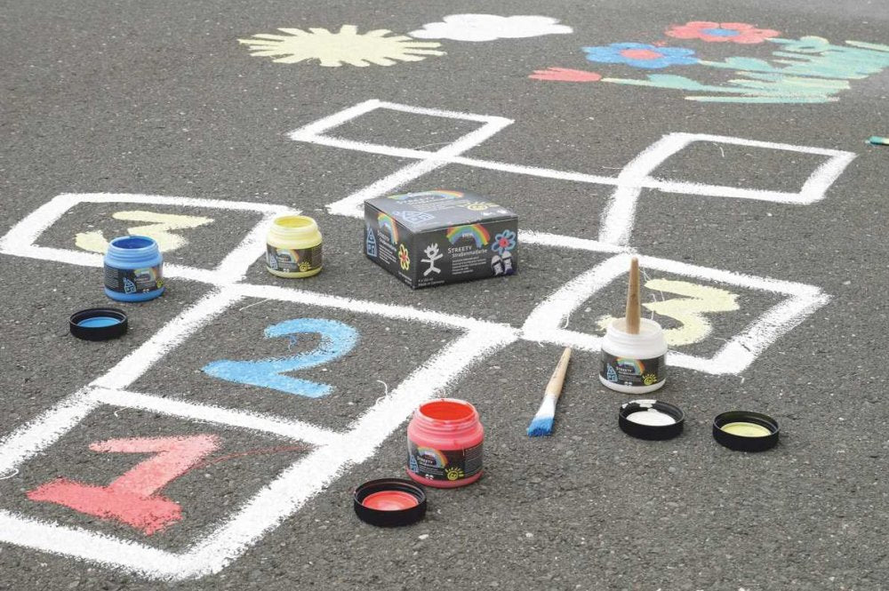 Med Kreul Streety flydende gadekridt malling kan dit barn forvandle asfalt og fliser til et farverigt lærred fyldt med fantasi og bevægelse. Sættet indeholder fire klare farver, der er vandbaserede og nemme at påføre med pensel eller malerrulle, så der kan males store former, figurer og baner direkte på underlaget.