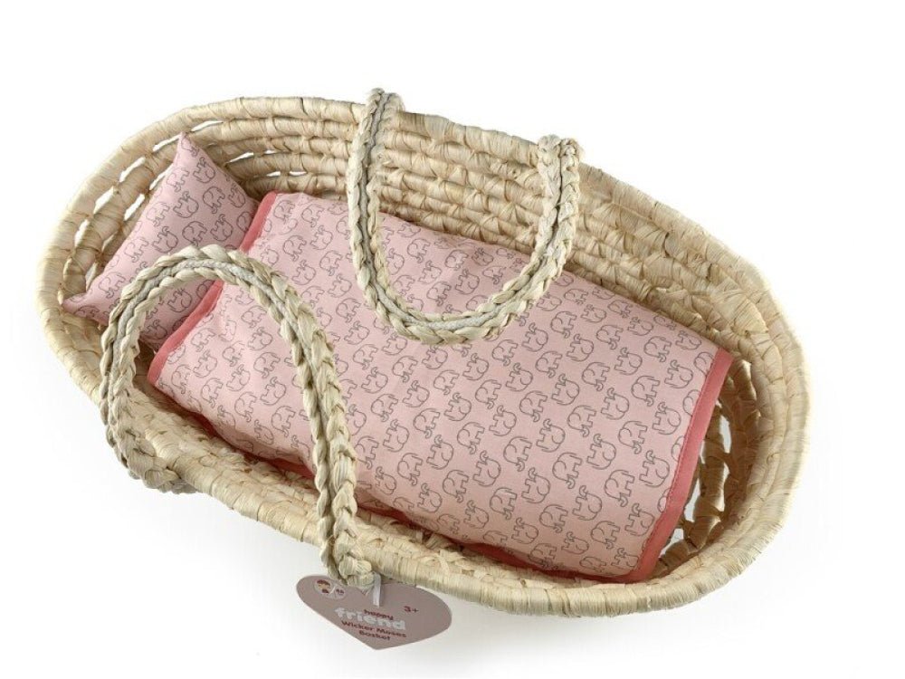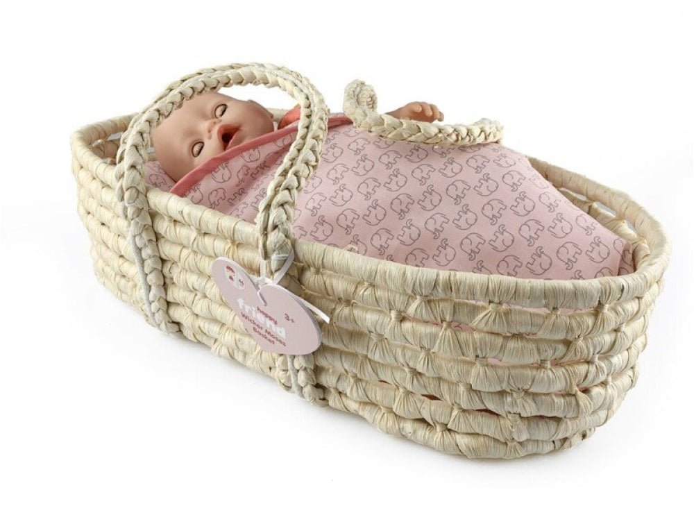 Happy Friend Moses kurv gør puttetid til en tryg og hyggelig leg. Kurven leveres med både pude og dyne, så barnet kan lægge dukken godt til rette og lege, at den skal sove. Den lille moseskurv er let at flytte rundt på, så dukken altid kan være tæt på. Legen inviterer til rolige stunder, hvor barnet øver omsorg, fantasi og ansvar gennem daglige rutiner. Happy Friend – Moses kurv er en del af Legebyens udvalg af dukketilbehør, der gør rollelegen levende.