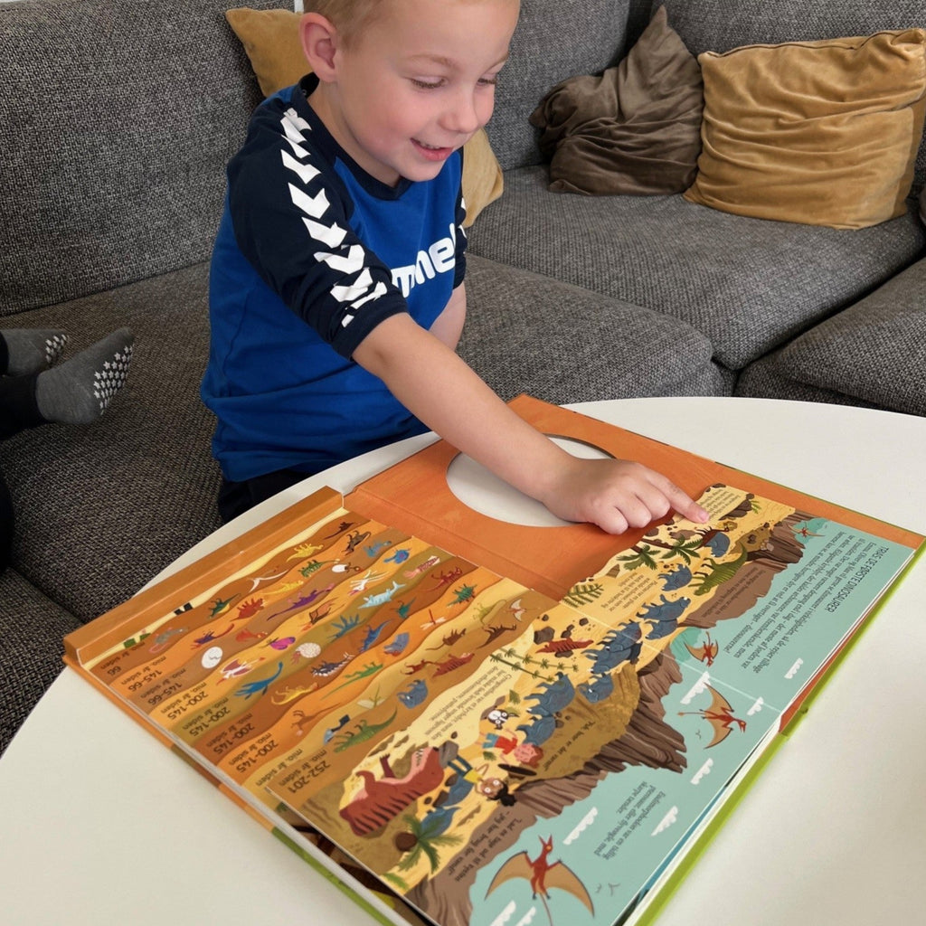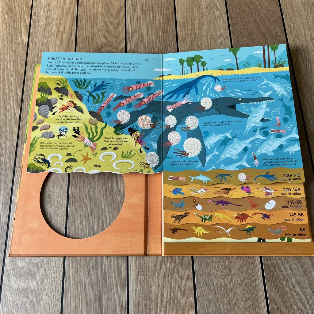 Kom med tilbage i tiden og mød dinosaurerne! Tag med på en rejse tilbage til dinosaurernes tid og lær en masse om nogle af de mest fantastiske dyr, der har eksisteret på Jorden. I bogen er der svar på spørgsmål som fx: Hvordan opfostrede dinosaurer deres unger? Hvornår herskede den mægtige Tyrannosaurus rex? Hvorfra ved vi, hvordan dinosaurer så ud og levede?