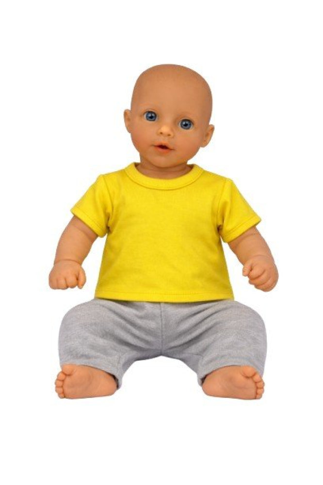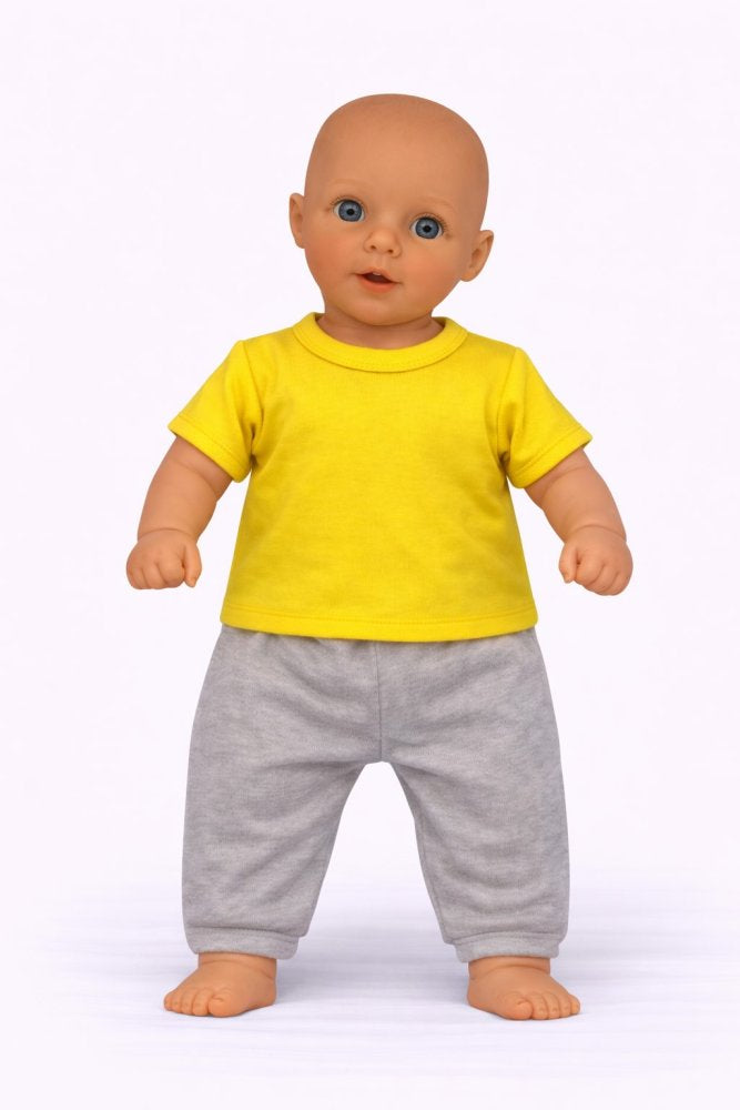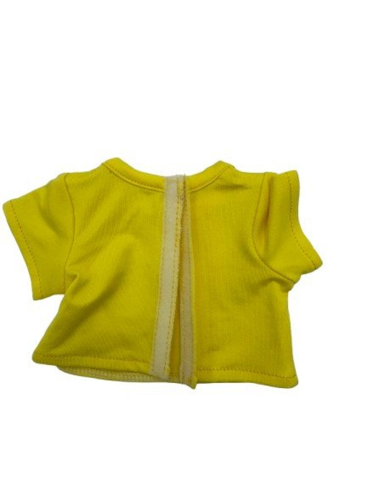 Legebyens dukketøjs t-shirt i størrelse 38-41 cm i gul. Blusen har velcro-lukning i ryggen, så det er nemt at påklæde dukken. Serien af dukketøj er designet af Legebyen selv, i en solid kvalitet, der kan holde til rollelegen med dukkerne.