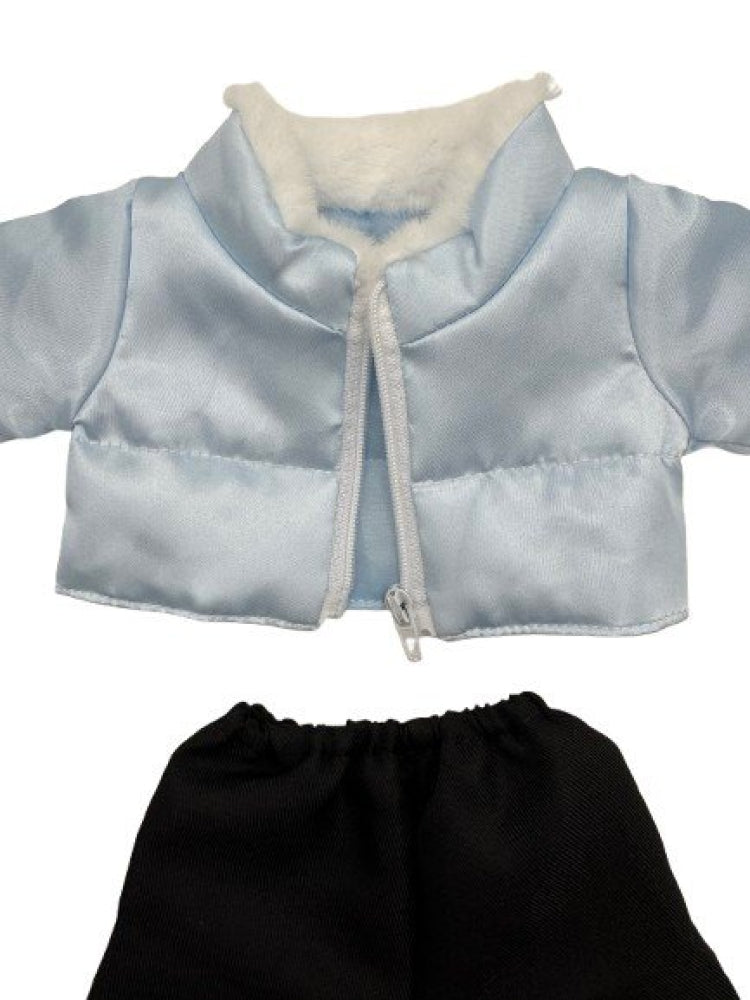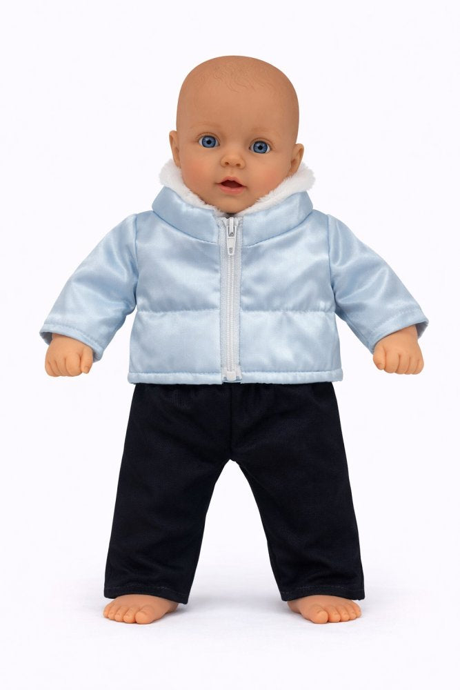 Legebyens 2-delt sæt med vinterjakke og bukser i størrelse 38-41 cm. 2-delt sæt vinterjakke med lynlås og bukser, hvilket gør det enkelt for børn helt ned i vuggestuealderen at at give dukken tøj på. Serien af dukketøj er designet af Legebyen selv, i en solid kvalitet, der kan holde til rollelegen med dukkerne.