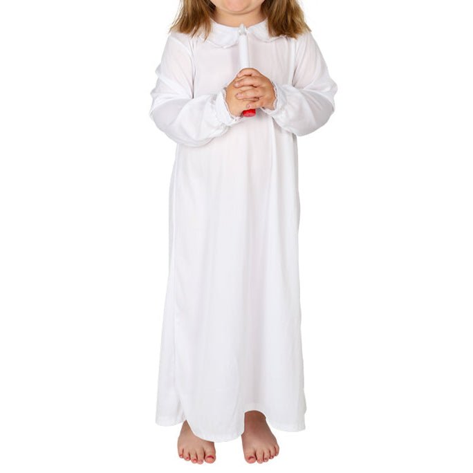 Fin luciakjole i børnestørrelse 98-104 cm, som passer til børn i 3-4 års alderen.