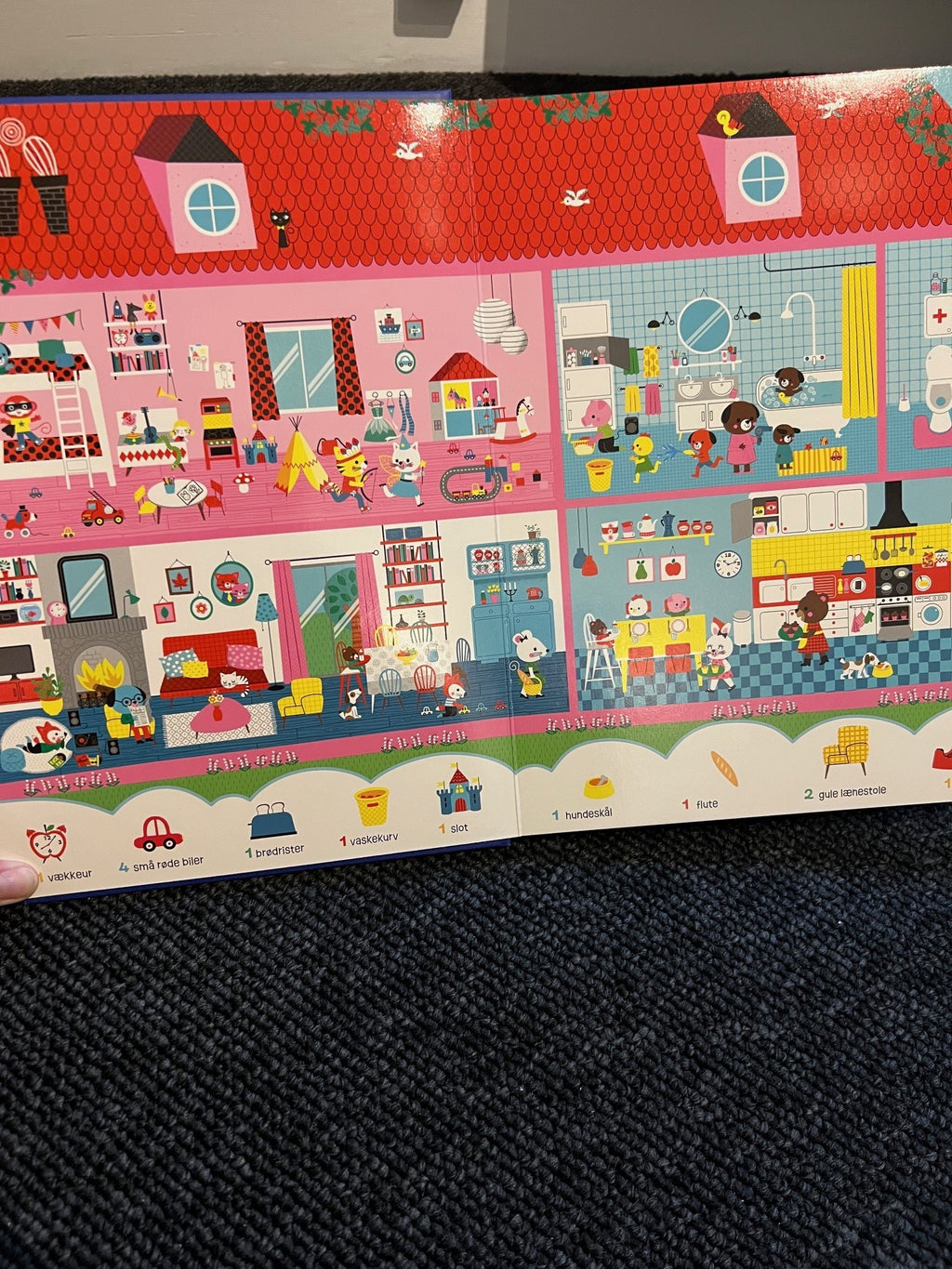 Bogen er velegnet til børn fra ca. 2 år. De kraftige sider gør den nem at håndtere, og både de yngste og de lidt større børn kan få glæde af at kigge, finde og tælle.