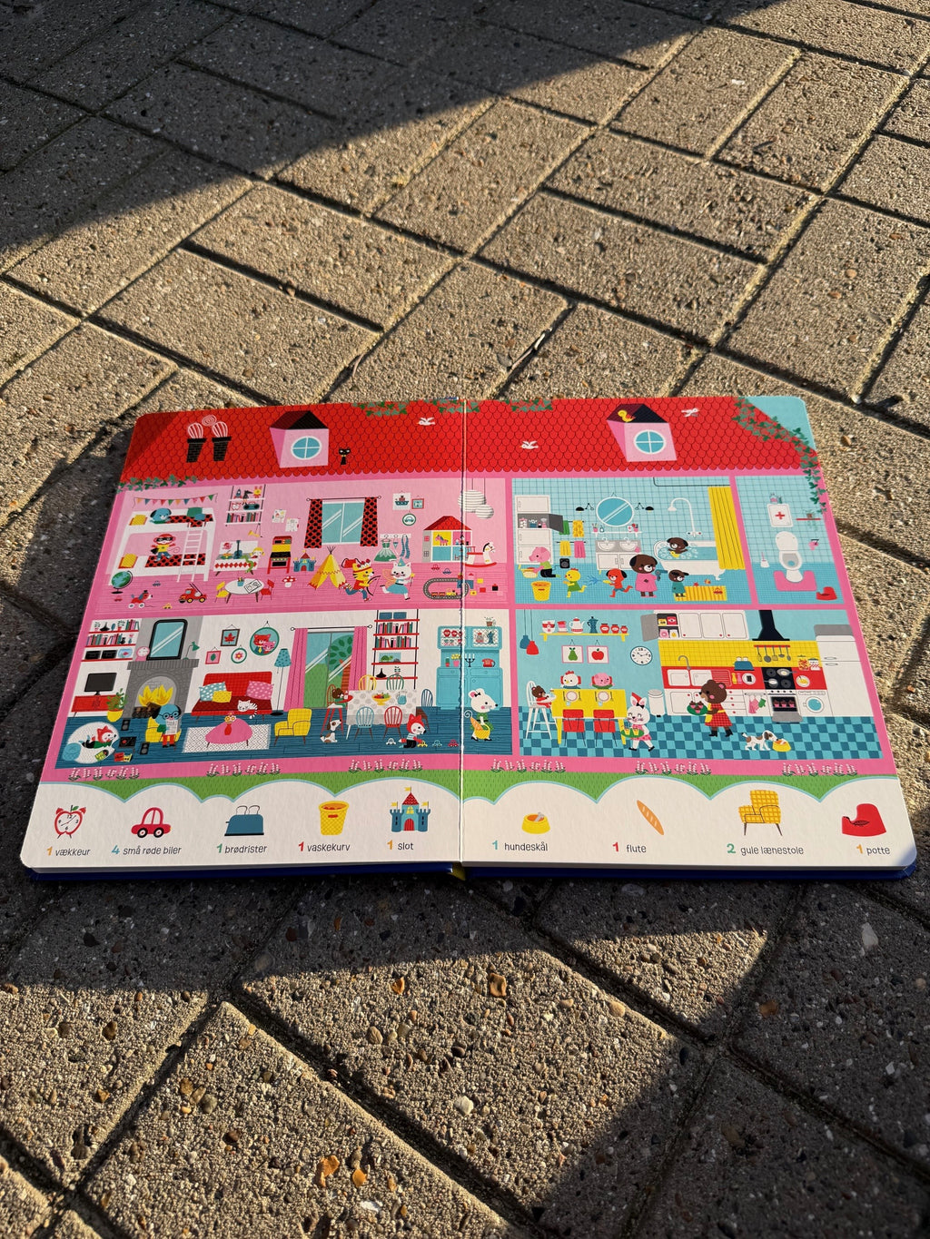 "En rigtig god og spændende søg og find bog, som er fyldt med flotte farverige illustrationer. Bogen vækkede hurtigt interessen hos Villads og Valdemar, som interesseret gik på opdagelse i bogen. Bogen har tykke sider, så selv de yngre børn kan bladre frem og tilbage uden, at siderne tager skade. Der sker en masse på hver side, som motiverer børnene til, at benævne det de ser og stille mange sjove spørgsmål, mens de søger efter de mange ting i bogen. En god og lærerig bog, som eksempelvis styrker og stimulerer synssansen, nysgerrigheden, opmærksomheden, koncentrationen, kommunikationen og observationen..."