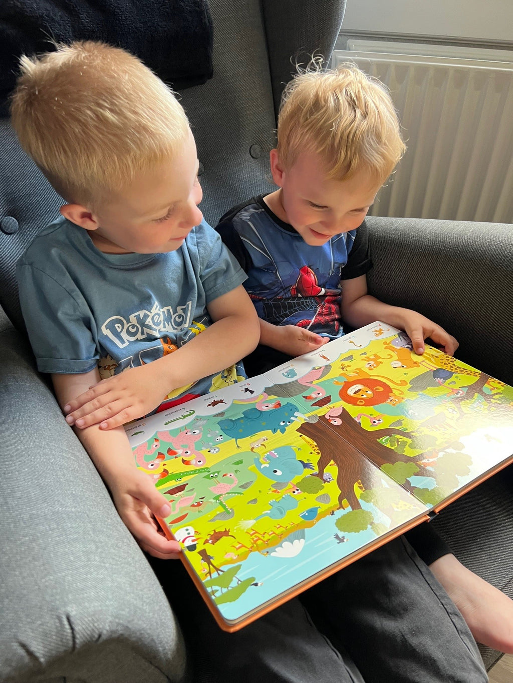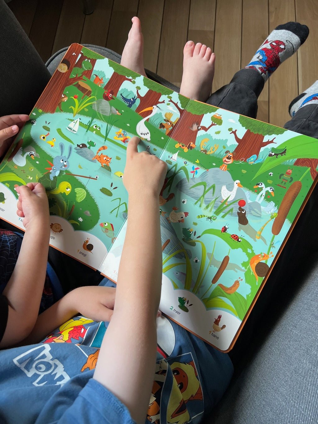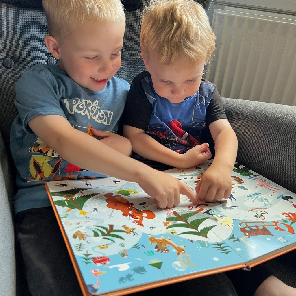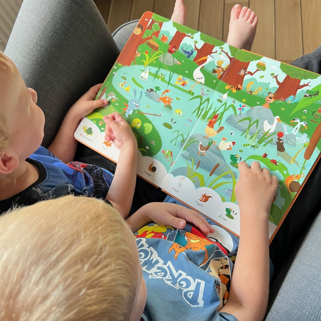 "En rigtig god og spændende søg og find bog med sjove dyr, som er fyldt med flotte farverige illustrationer. Bogen vækkede hurtigt interessen hos Villads og Valdemar, som interesseret gik på opdagelse i bogen. Bogen har tykke sider, så selv de yngre børn kan bladre frem og tilbage uden, at siderne tager skade. Der sker en masse på hver side, som motiverer børnene til, at benævne det de ser og stille mange sjove spørgsmål, mens de søger efter de mange ting i bogen. En god og lærerig bog, som eksempelvis styrker og stimulerer synssansen, nysgerrigheden, opmærksomheden, koncentrationen, kommunikationen og observationen..."