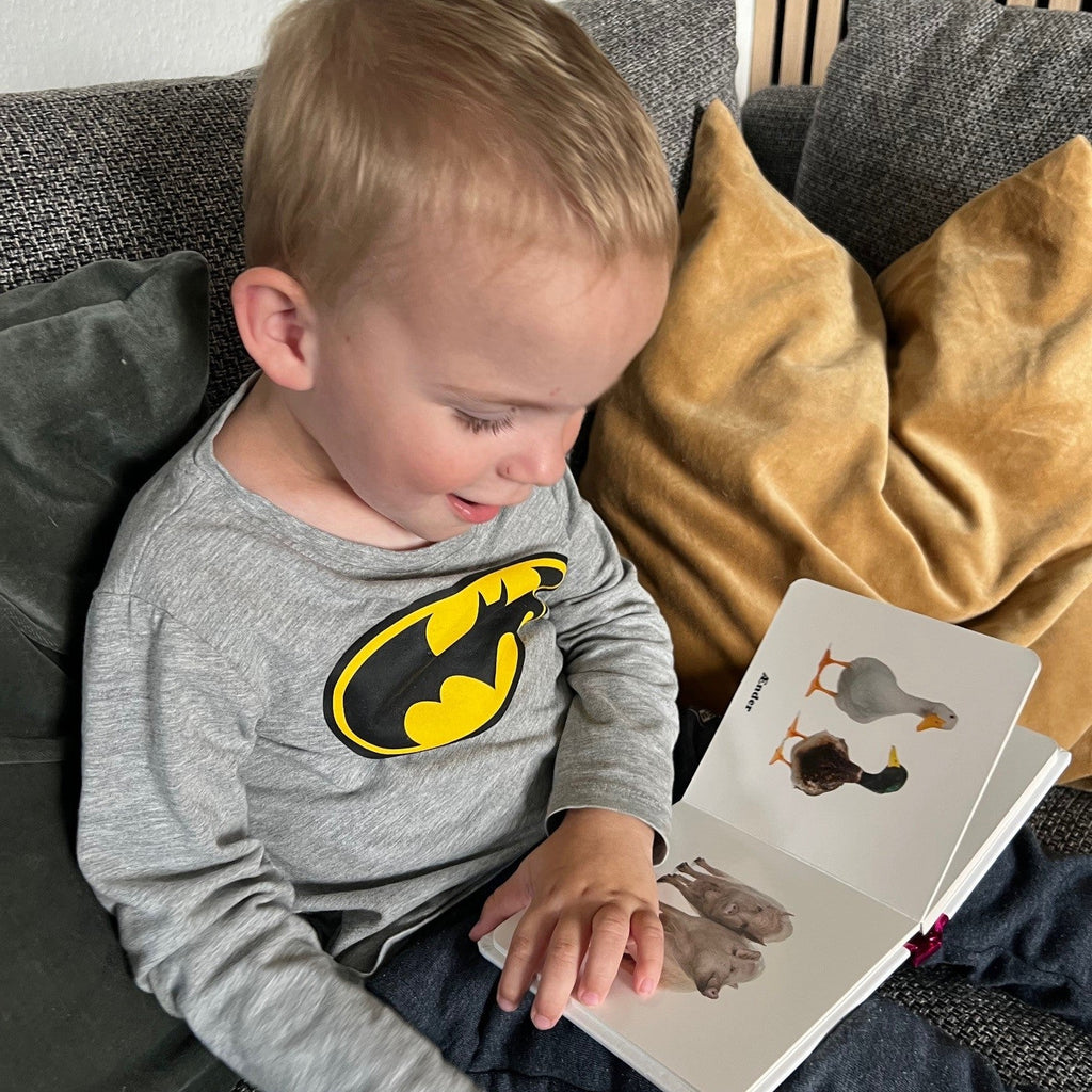 "En lærerig og velovervejet bog med tykke sider og simple billeder i flotte farver. Alle billederne er tydelige og let genkendelige. Perfekt bog til, at træne de yngstes ordforråd og opmærksomhed. Det, at man benævner de ting, som man ser i bogen er med til, at motivere børn til, at forsøge at sige det samme. Kvaliteten på bogen er rigtig god, så selv de yngste også sagtens selv kan kigge i bogen..."
