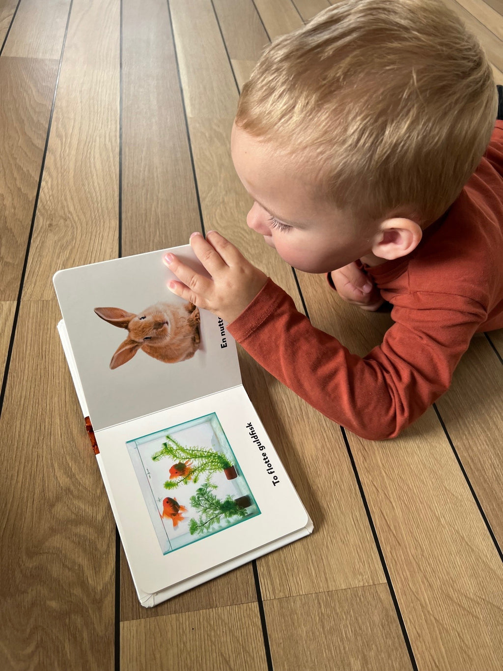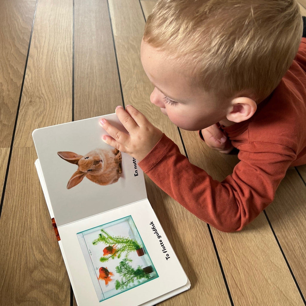 "En lærerig og velovervejet bog med tykke sider og simple billeder i flotte farver. Alle billederne er tydelige og let genkendelige. Perfekt bog til, at træne de yngstes ordforråd og opmærksomhed. Det, at man benævner de ting, som man ser i bogen er med til, at motivere børn til, at forsøge at sige det samme. Kvaliteten på bogen er rigtig god, så selv de yngste også sagtens selv kan kigge i bogen..."