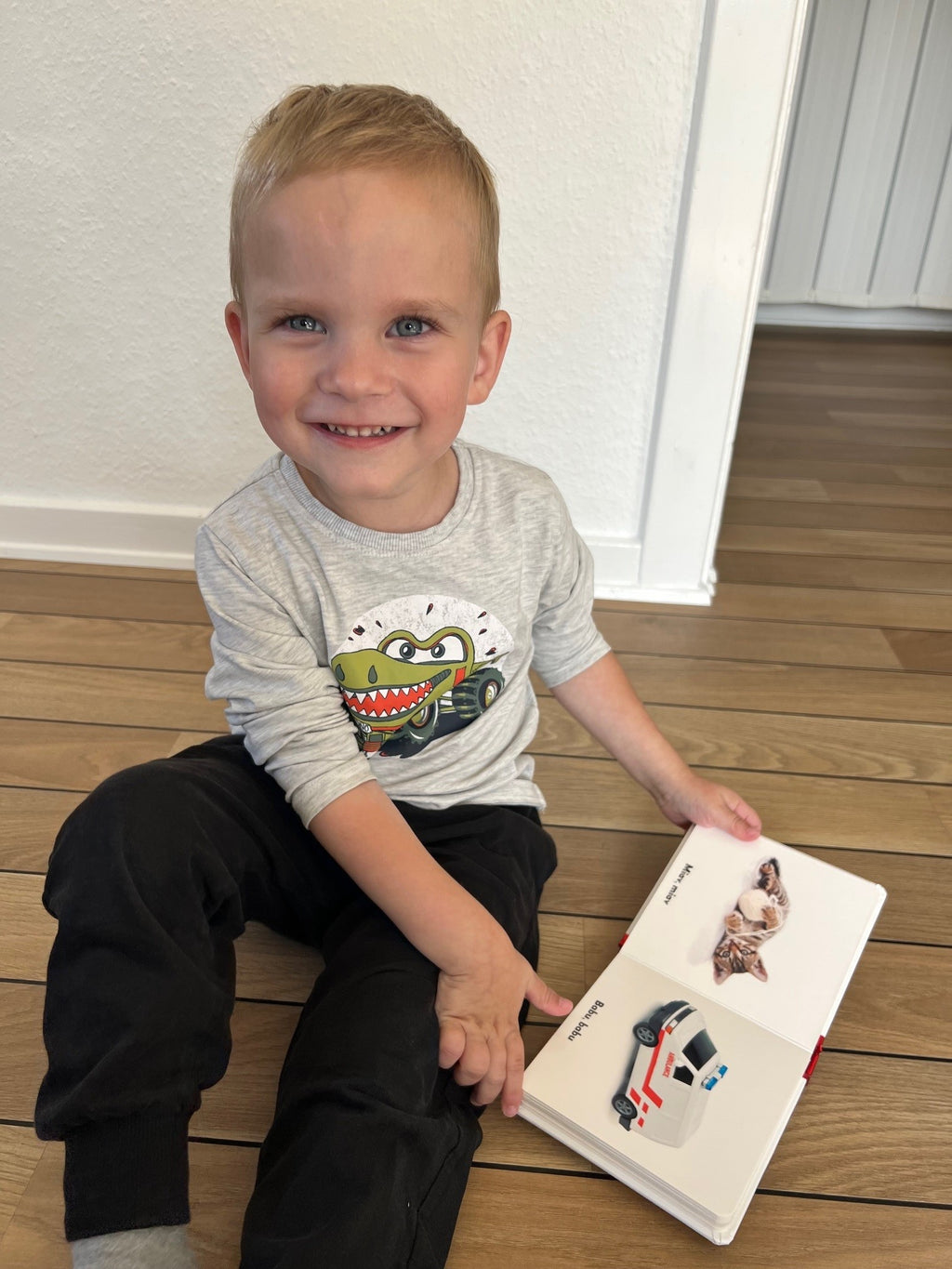 De robuste sider er perfekte til små hænder, og billederne gør det nemt at koble lyde til genstande og dyr, som barnet møder i hverdagen. En hyggelig bog, der skaber sjov dialog og styrker sproget i samvær med en voksen. At sætte billeder på lyde gør det sjovt og lærerigt: