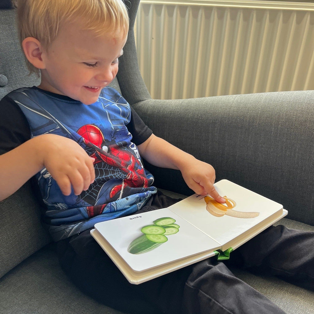Børn elsker at pege, gentage og snakke om det, de ser, og bogen giver en oplagt mulighed for dialog om, hvad vi spiser i hverdagen. De robuste sider er perfekte til små hænder, der gerne vil udforske verden gennem billeder. At lære om mad gennem billeder giver barnet både ord, forståelse og glæde: