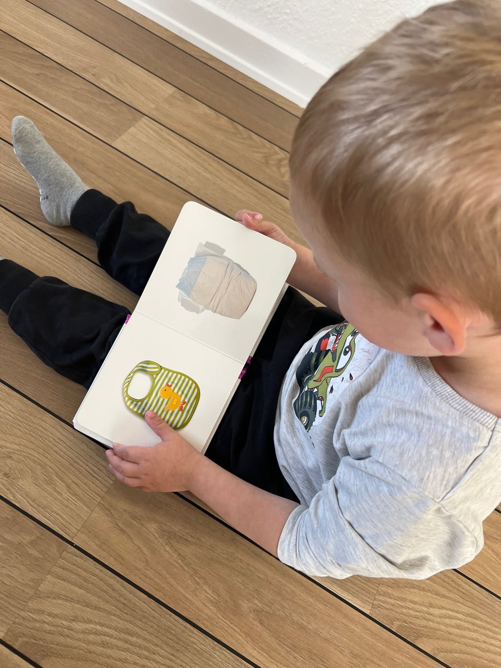 - Skaber tryghed gennem enkle billeder, som barnet kan relatere til