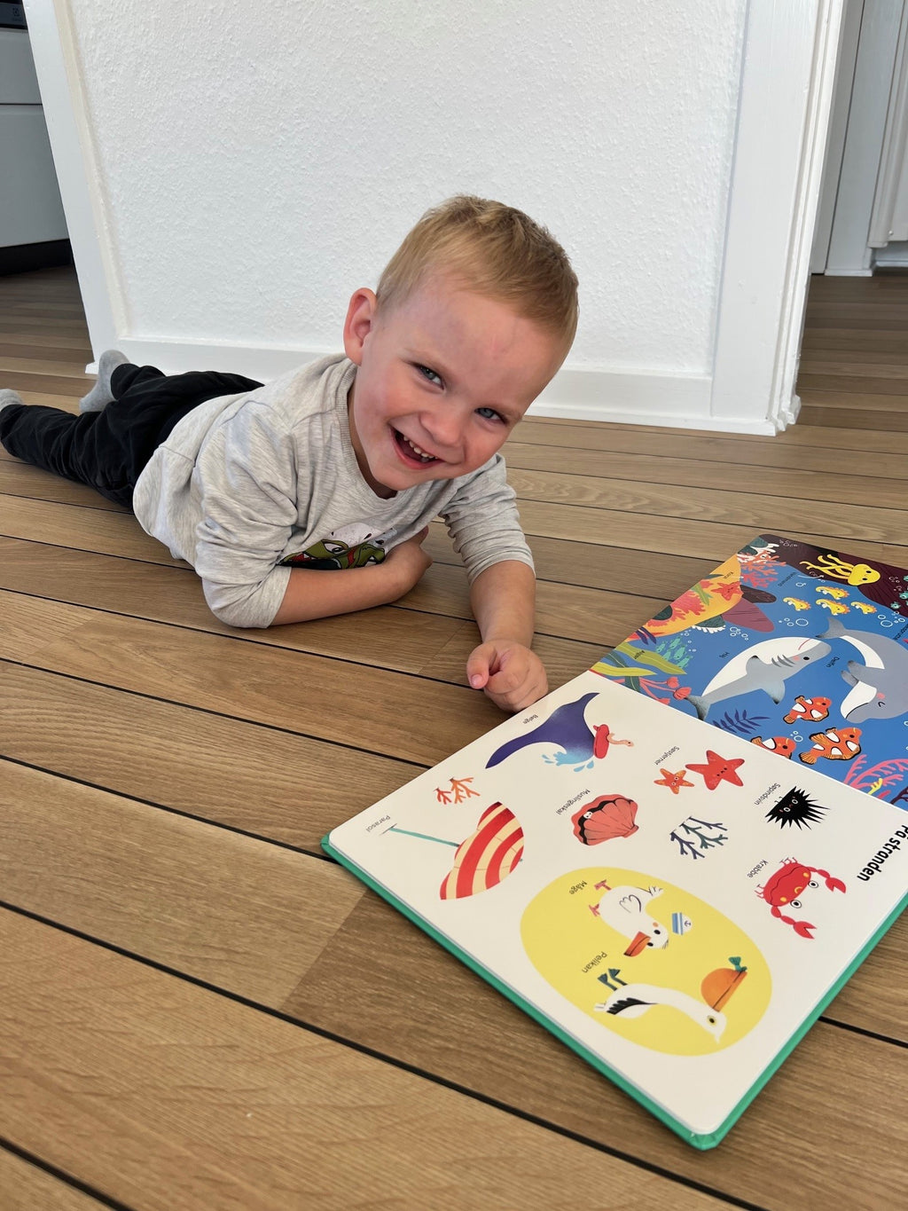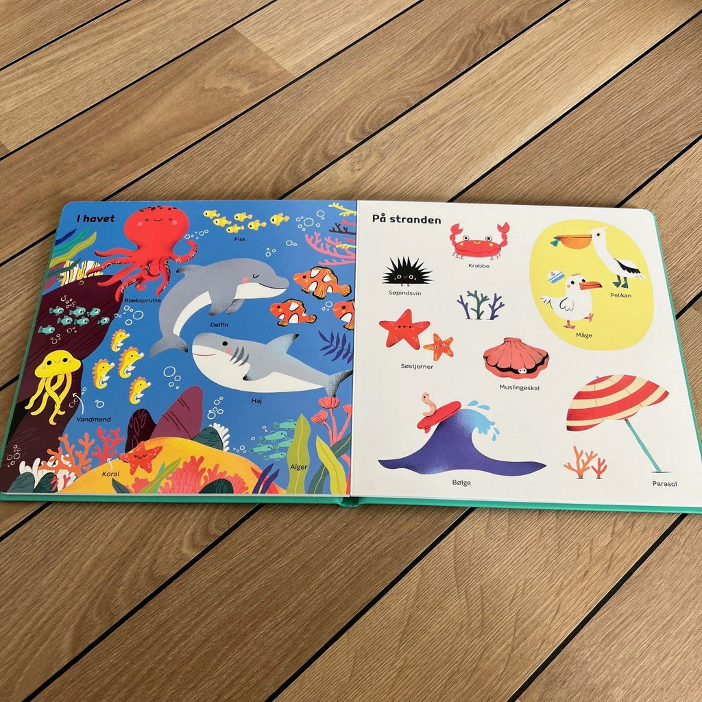 "Herhjemme har bøger som denne været et hit for alle mine tre børn, indtil 3-4 års alderen. Bøger som denne indeholder virkelig mange relevante ord. Det at ordene bliver visualiseret ved hjælp af de mange flotte illustrationer gør, at det giver meget mere mening for børnene. Når vi forældre benævner de forskellige ting, er det med til at motivere børn til, at efterligne. Bogen er lavet til de yngste børn, som ofte er lidt hårde ved bøger, af den grund har bogen tykke sider, så børn også selv kan sidde og bladre..."
