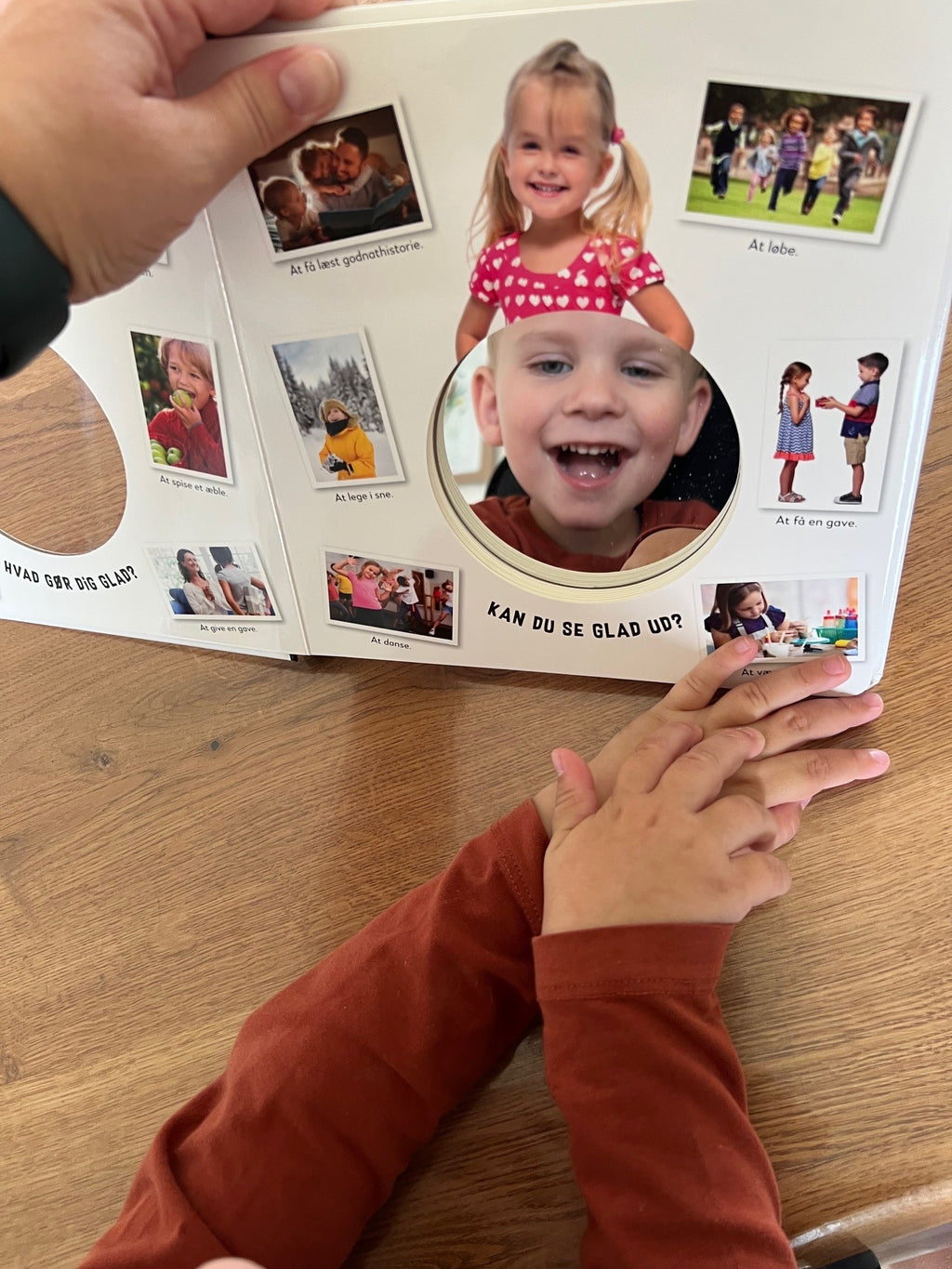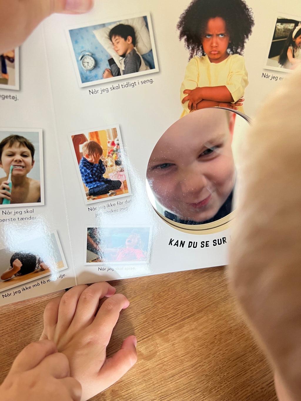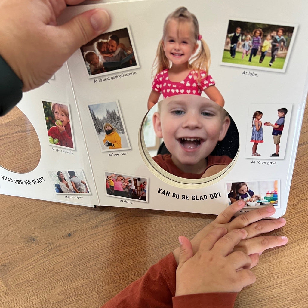"En rigtig fin børnebog om følelser, der på en enkel og visuel måde hjælper børn med at forstå og sætte ord på deres egne følelser. De mange foto viser tydeligt de forskellige følelser, som børnene kan relatere til og bogen indeholder et spejl, så barnet kan se sig selv, mens der tales om følelserne. En varm anbefaling til både hjemmet og daginstitutionen..."