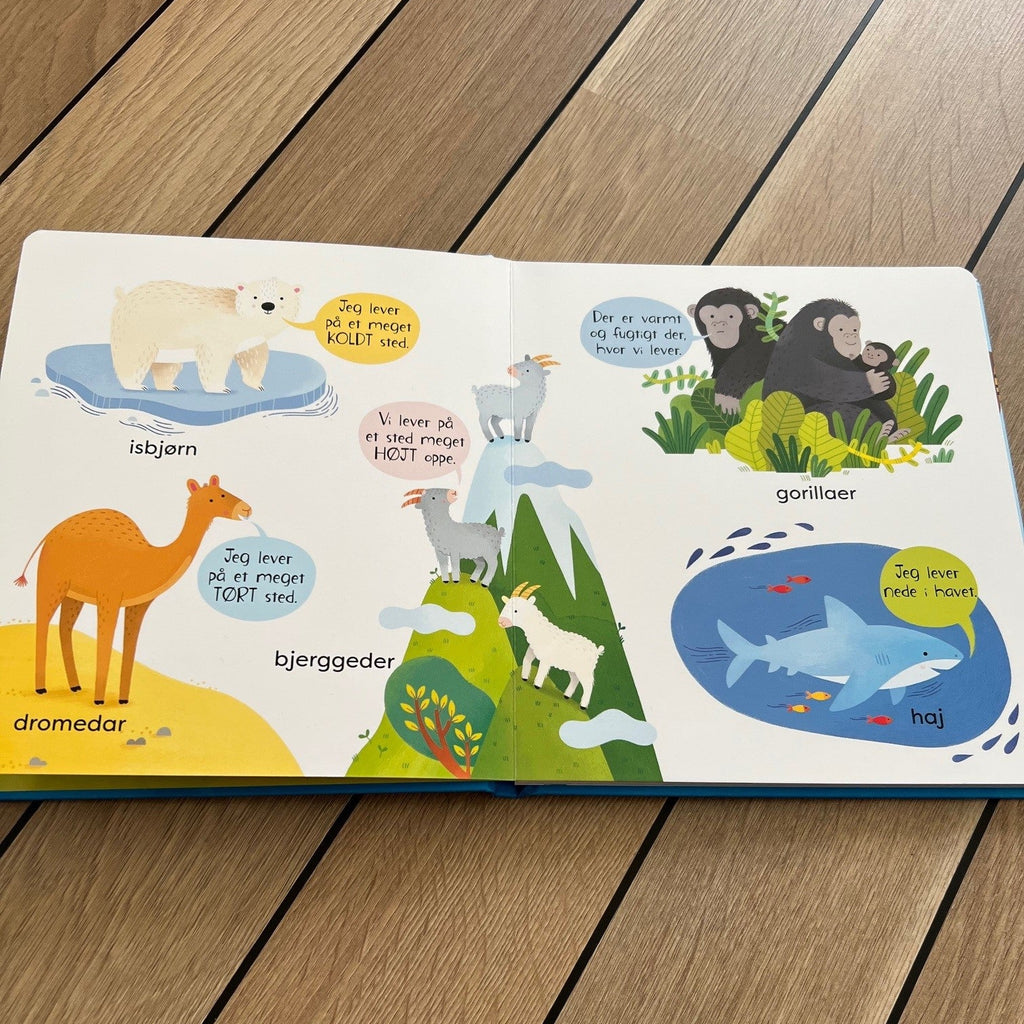 De fine illustrationer er grupperet efter velkendte og populære dyr, hvilket gør det nemt og hyggeligt at gå på opdagelse i dyrenes verden sammen med en voksen.