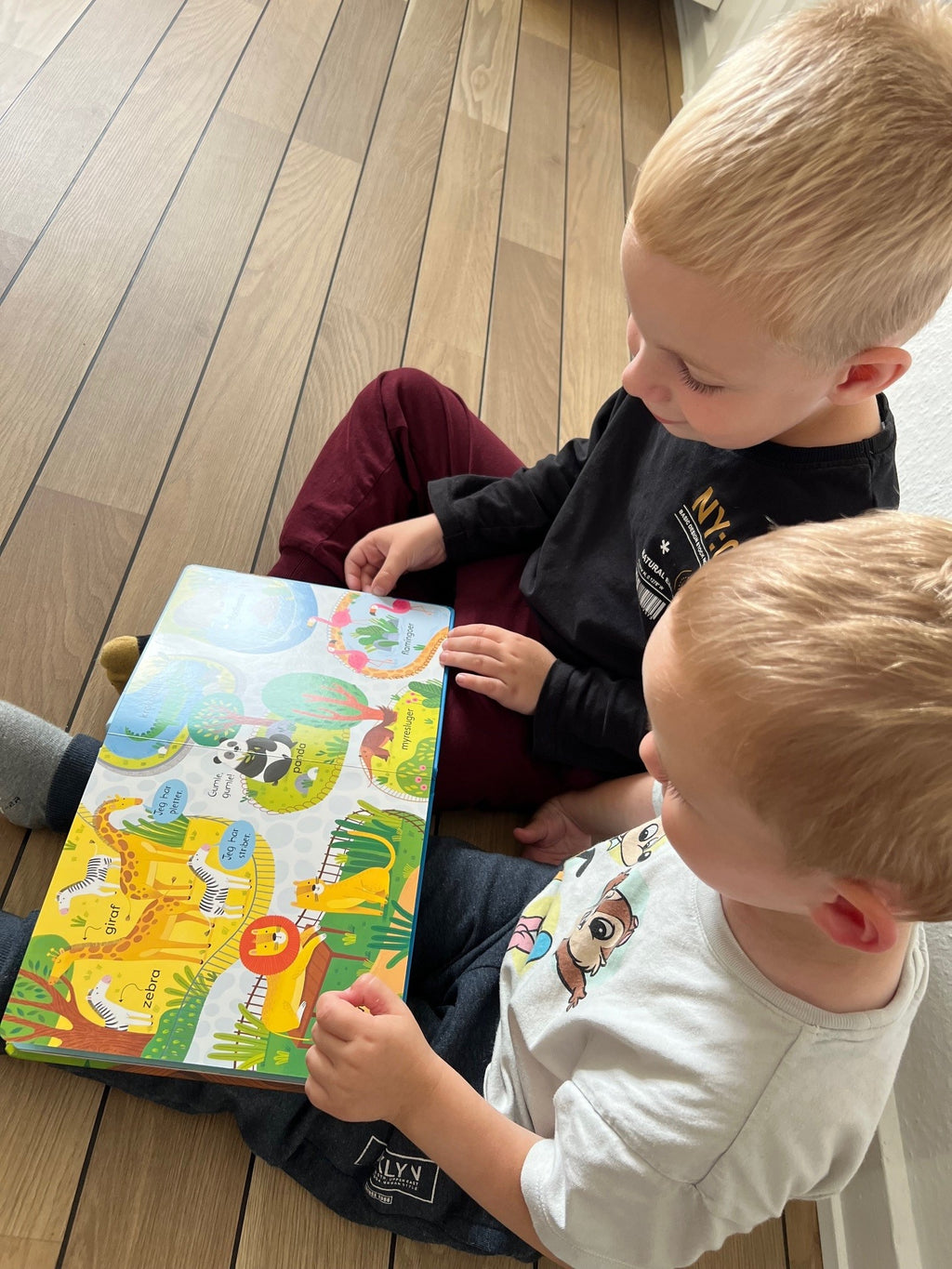 "Herhjemme har bøger som denne været et hit for alle mine tre børn, indtil 4-5 års alderen. Bøger som denne indeholder sjov og vigtig læring. Det at dyrene bliver visualiseret ved hjælp af de mange flotte illustrationer gør, at det giver meget mere mening for børnene. Når vi forældre benævner de forskellige dyr, er det med til at motivere børn til, at efterligne..."