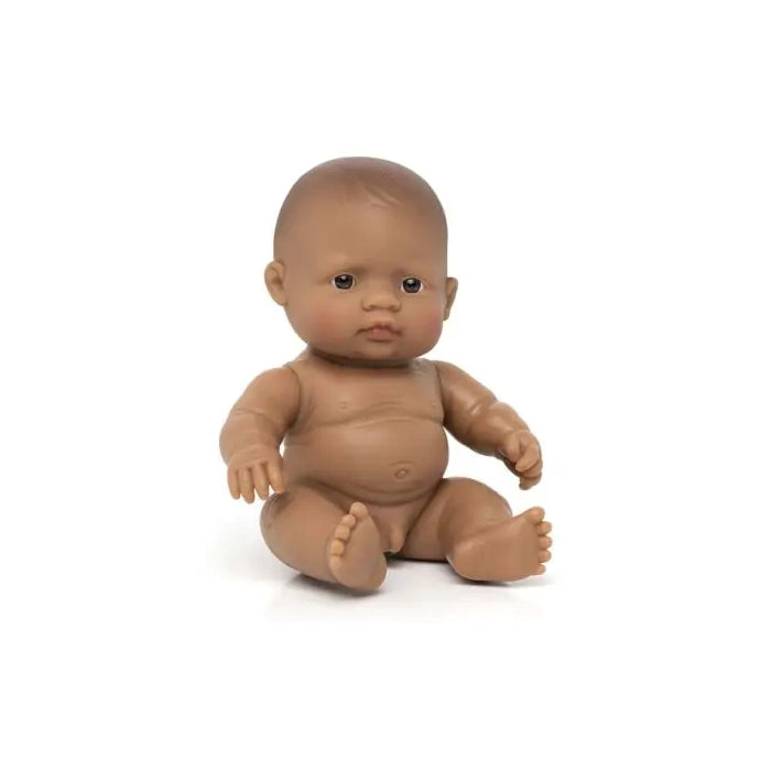 Denne dukke fra Miniland er designet til omsorgsfuld rolleleg, hvor børn kan udforske relationer, empati og hverdagsrutiner. Dukken måler 21 cm. i højden, er en dreng af latinamerikansk afstamning, og har ikke hår på hovedet. Dukken har en lille størrelse, der gør den let at håndtere for de yngre børn. OBS: Dukken leveres uden tøj!