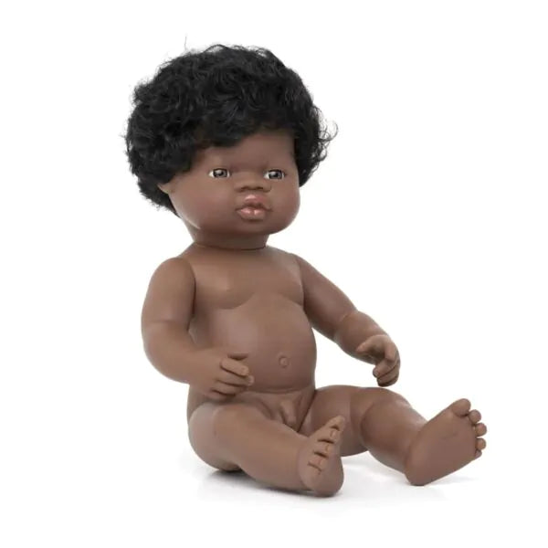 Denne dukke fra Miniland er designet til omsorgsfuld rolleleg, hvor børn kan udforske relationer, empati og hverdagsrutiner. Dukken måler 38 cm. i højden, er en dreng af afrikansk afstamning, har blødt hår og en størrelse, der gør den nem at håndtere for mindre børn. Dukken leveres uden tøj!