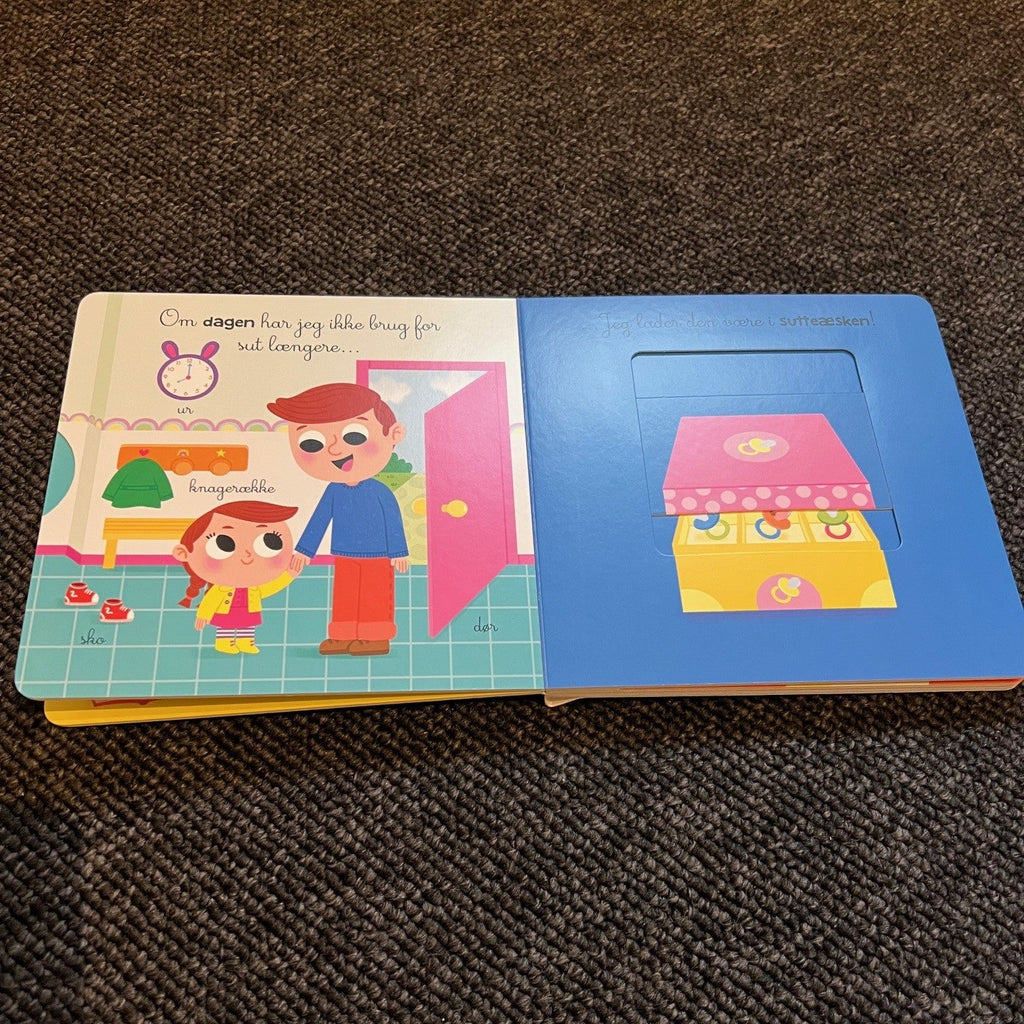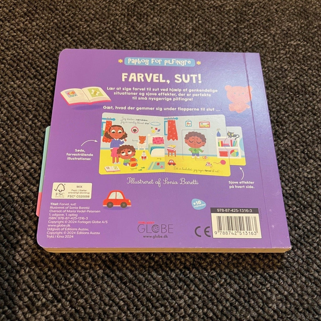 Sig farvel til sutten - med leg og genkendelse! Denne skønne bog hjælper barnet med at sige farvel til sutten gennem genkendelige hverdagssituationer og sjove effekter, der stimulerer nysgerrighed og små pilfingre. Børn kan fordybe sig i farvel‑ritualet til sutten med denne robuste papbog spækket med sjove flapper og effekter – perfekte til små pilfingre. Bogen er en del af Legebyens sortiment af sanselige og lærerige papbøger, der inviterer til nærvær og hyggelige stunder.