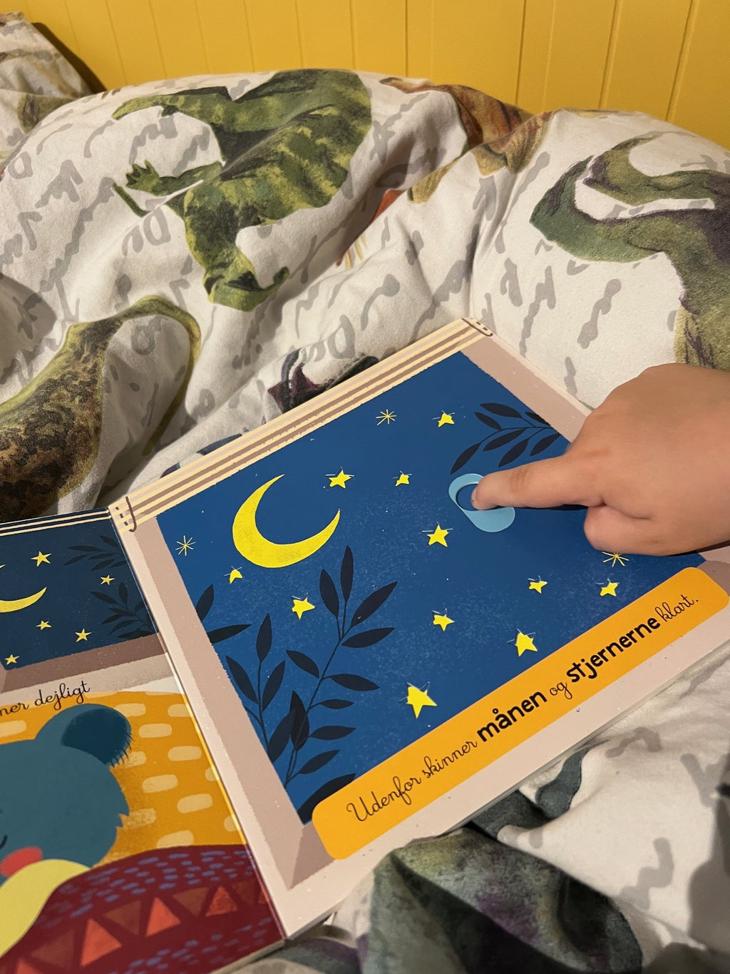 Bogen er en del af Legebyens sortiment af sanselige papbøger, der gør hverdagsrutiner til hyggelige og lærerige øjeblikke før sengetid.