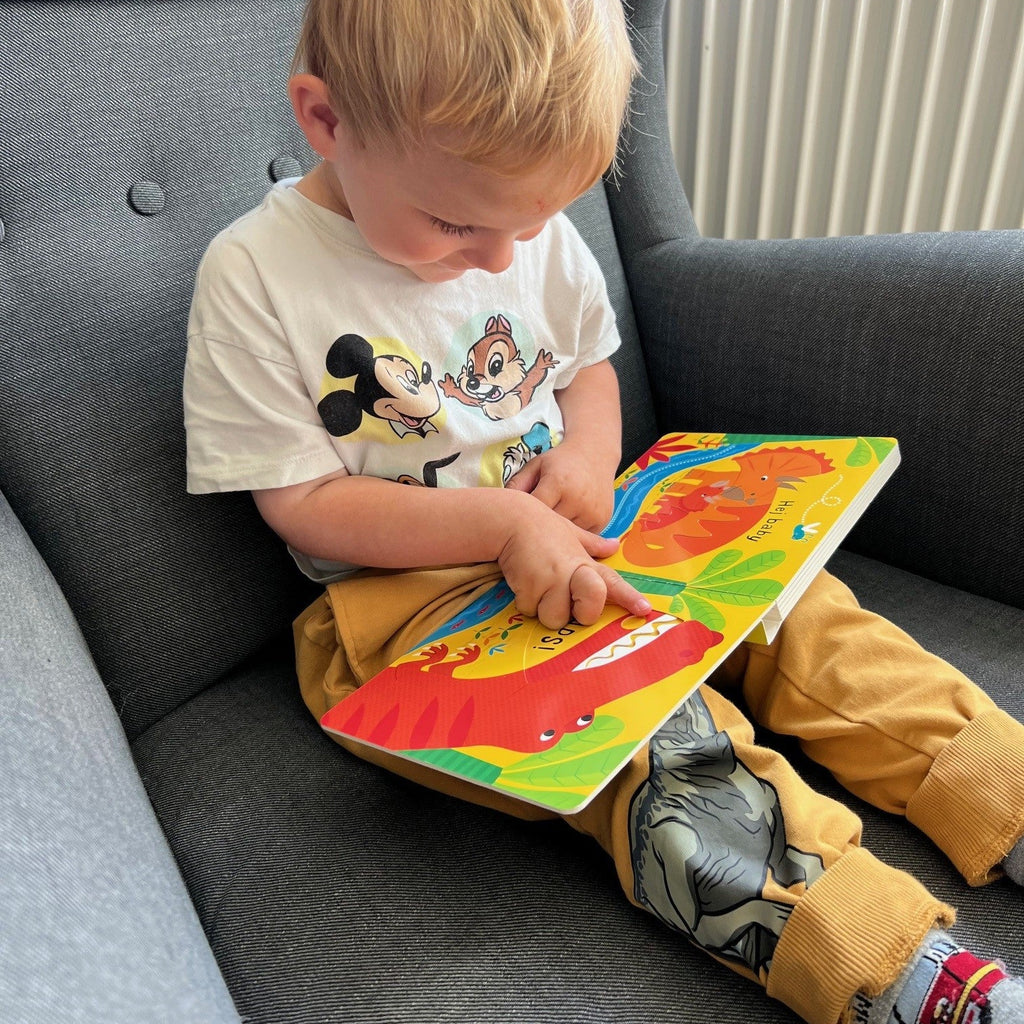 Denne søde "Skub-og-se" bog med kraftige papsider og sjove skub- og træk effekter er særdeles velegnet til små fingre. De små børn vil elske at se på de lyse og klare illustrationer i denne dejlige bog med dinosaurer og se, hvad der mon sker, når de skubber til bogens bevægelige dele...