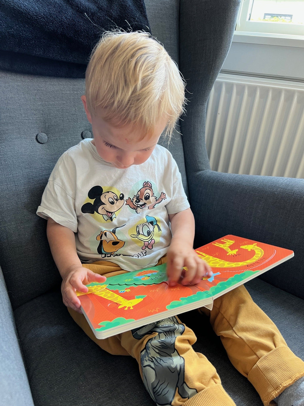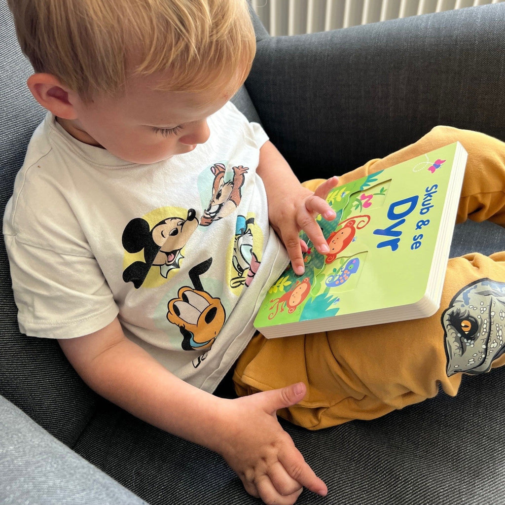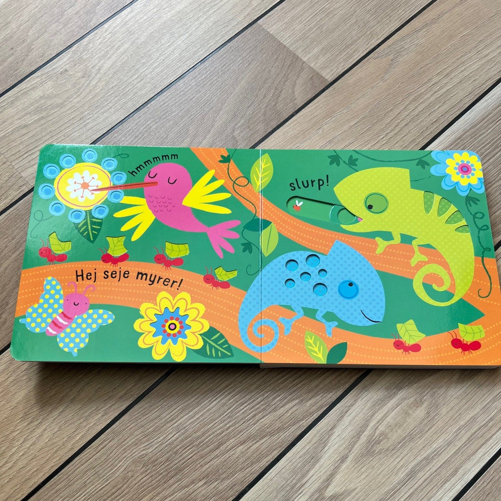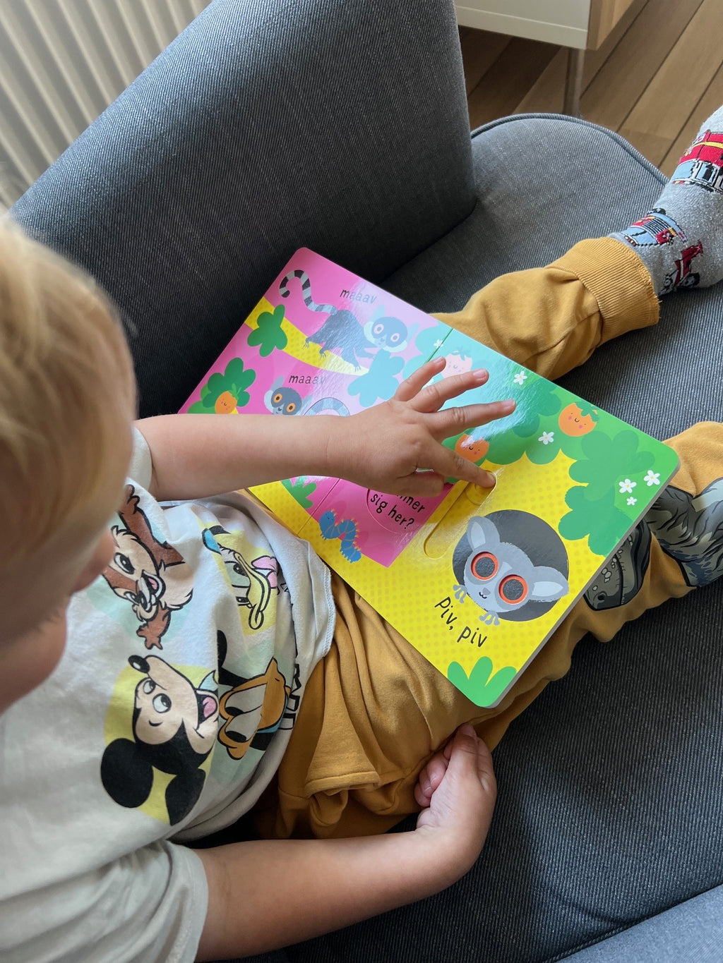 "En fin og farverig bog med fokus på at udvikle og stimulere det lille barns finmotoriske færdigheder, hånd-øje-koordination, koncentration og problemløsning. Valdemar forstod hurtigt, hvordan han med fingeren kunne få figurerne til at bevæge sig. Bogen vil også styrke den visuelle sans ved hjælp af de flotte farverige illustrationer..."