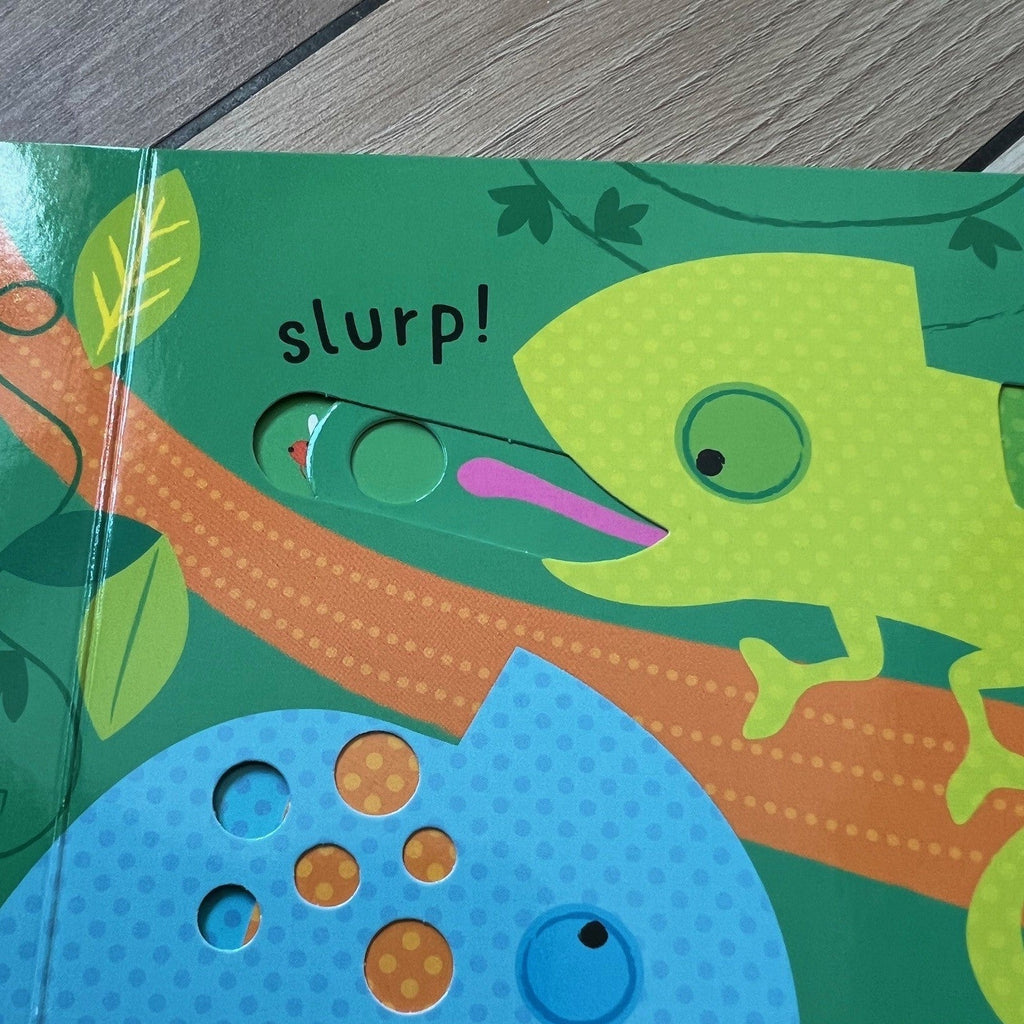 Denne søde "Skub-og-se" bog med kraftige papsider og sjove skub- og træk effekter er særdeles velegnet til små fingre. De små børn vil elske at se på de lyse og klare illustrationer i denne dejlige bog med dinosaurer og se, hvad der mon sker, når de skubber til bogens bevægelige dele.