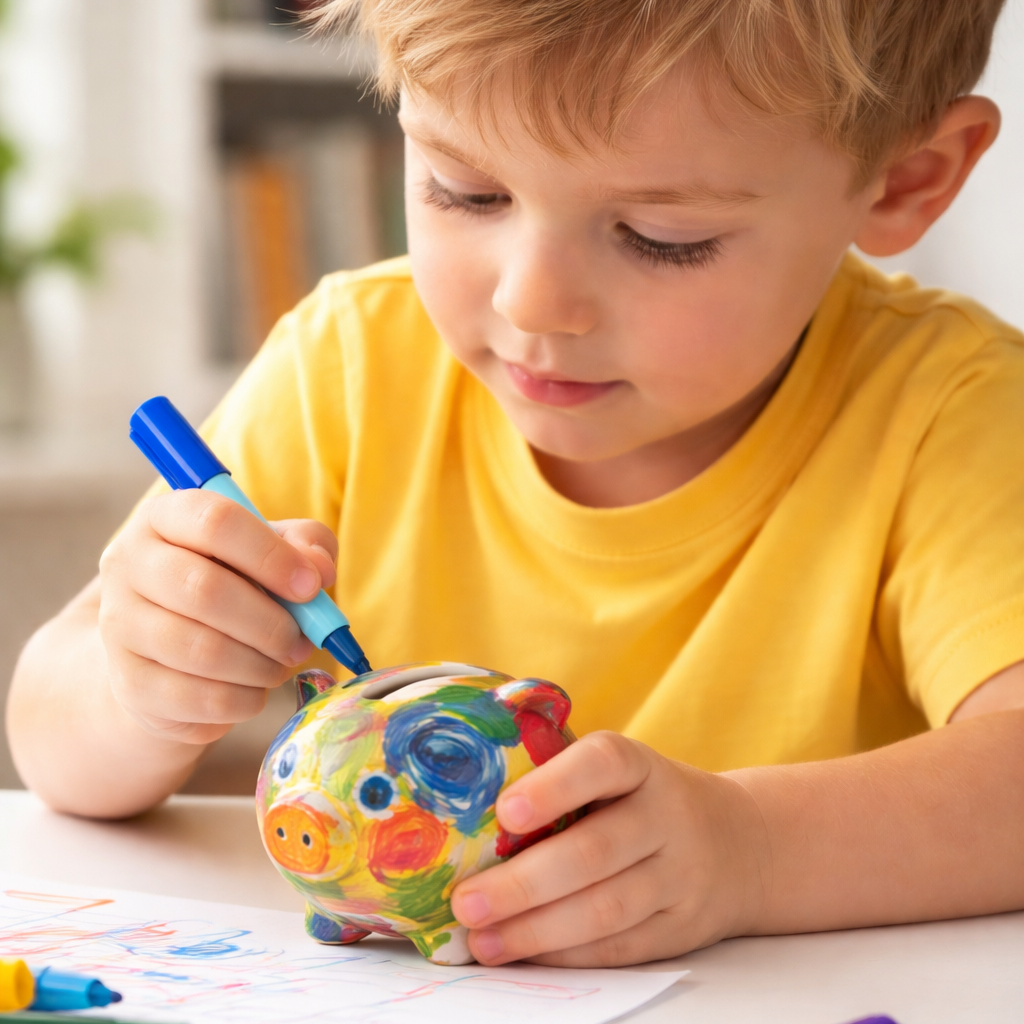 Fra 3 år | Mal og pynt din egen sparegris med porcelænstuscher...