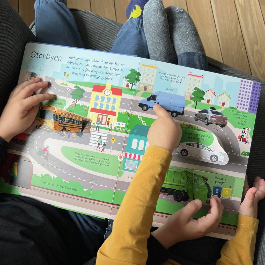 Denne herlige bog giver barnet en introduktion til transportens verden. Via en sjov og interaktiv tilgang kan barnet lære om biler, lastbiler, både, fly og en hel masse mere!