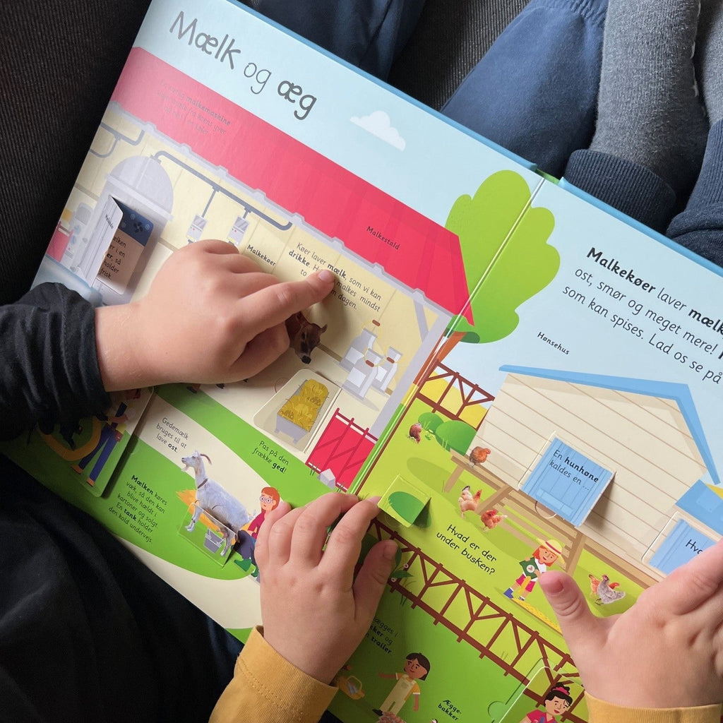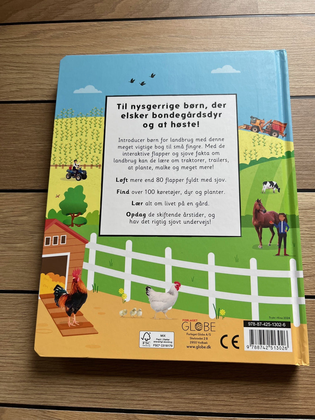 Til nysgerrige børn, der elsker bondegårdsdyr og at høste! Introducer børn for landbrug med denne meget vigtige flapbog til små fingre. Med de interaktive flapper og sjove fakta om landbrug kan de lære om traktorer, trailers, at plante, malke og meget mere!