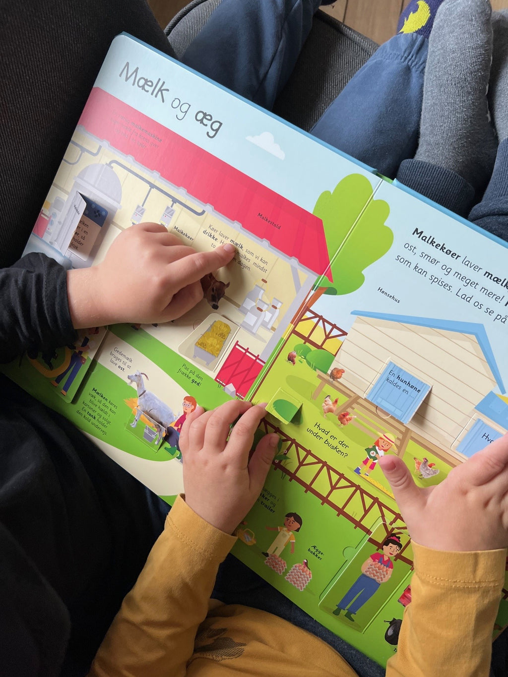 "En underholdende og lærerig børnebog med flapper. De flotte farverige illustrationer fangede straks opmærksomheden hos børnene. Stil børnene spørgsmål og tal om hvad der ses i bogen og åben derefter de tykke flapper. En bog der inviterer til gode snakke, hvilket er perfekt for, at kunne udvikle ordforråd, opmærksomhed og interesse..."