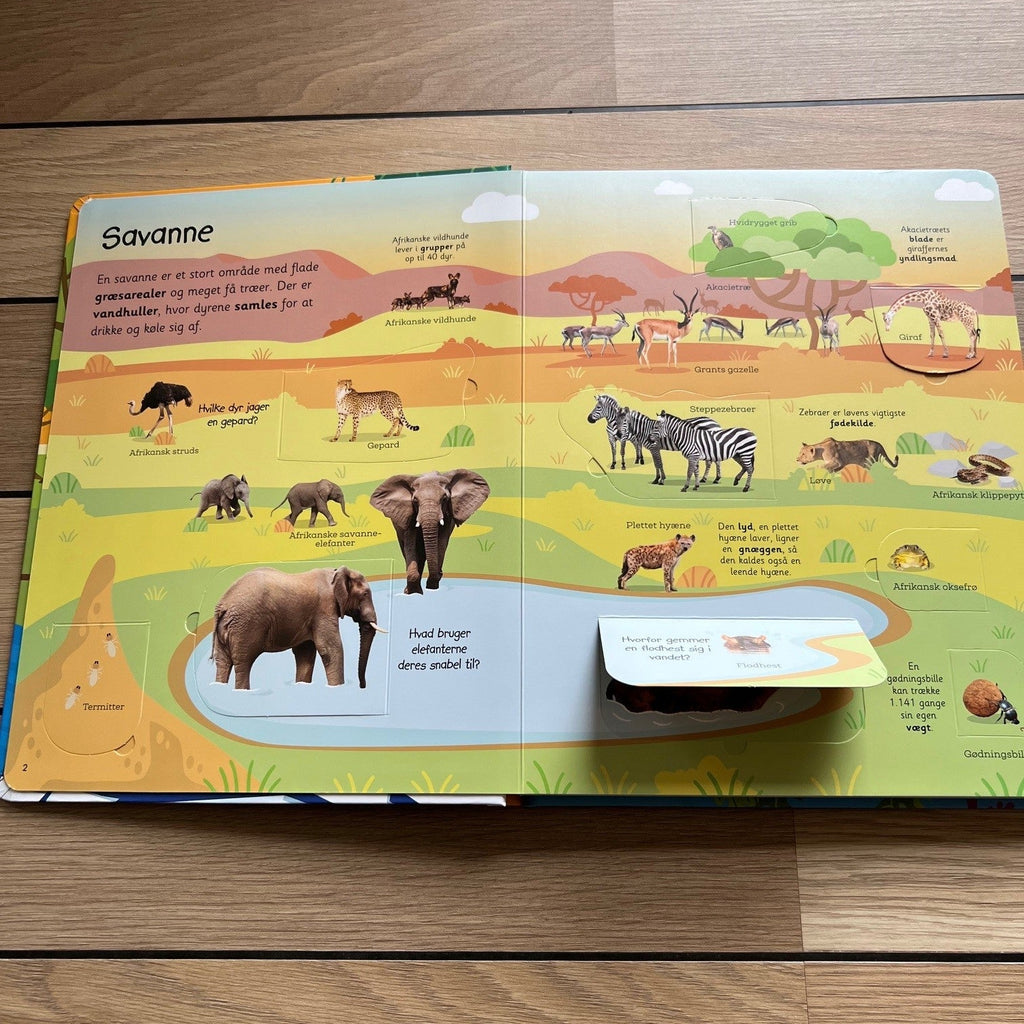For små læsere, som elsker dyr! Denne herlige flapbog giver barnet en introduktion til dyrenes verden. Via en sjov og interaktiv tilgang kan barnet lære om dyr, deres levesteder og en hel masse mere!